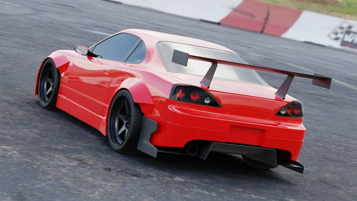 This is a 3D model of the Nissan Silvia S15 using the Rocket Bunny bodykit I made. I admit this model has a fairly high poly. So I don't think it's suitable for use as an in-game asset.
