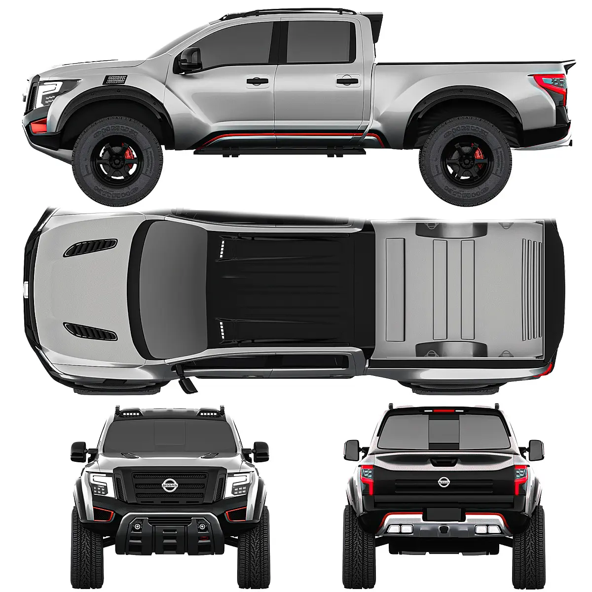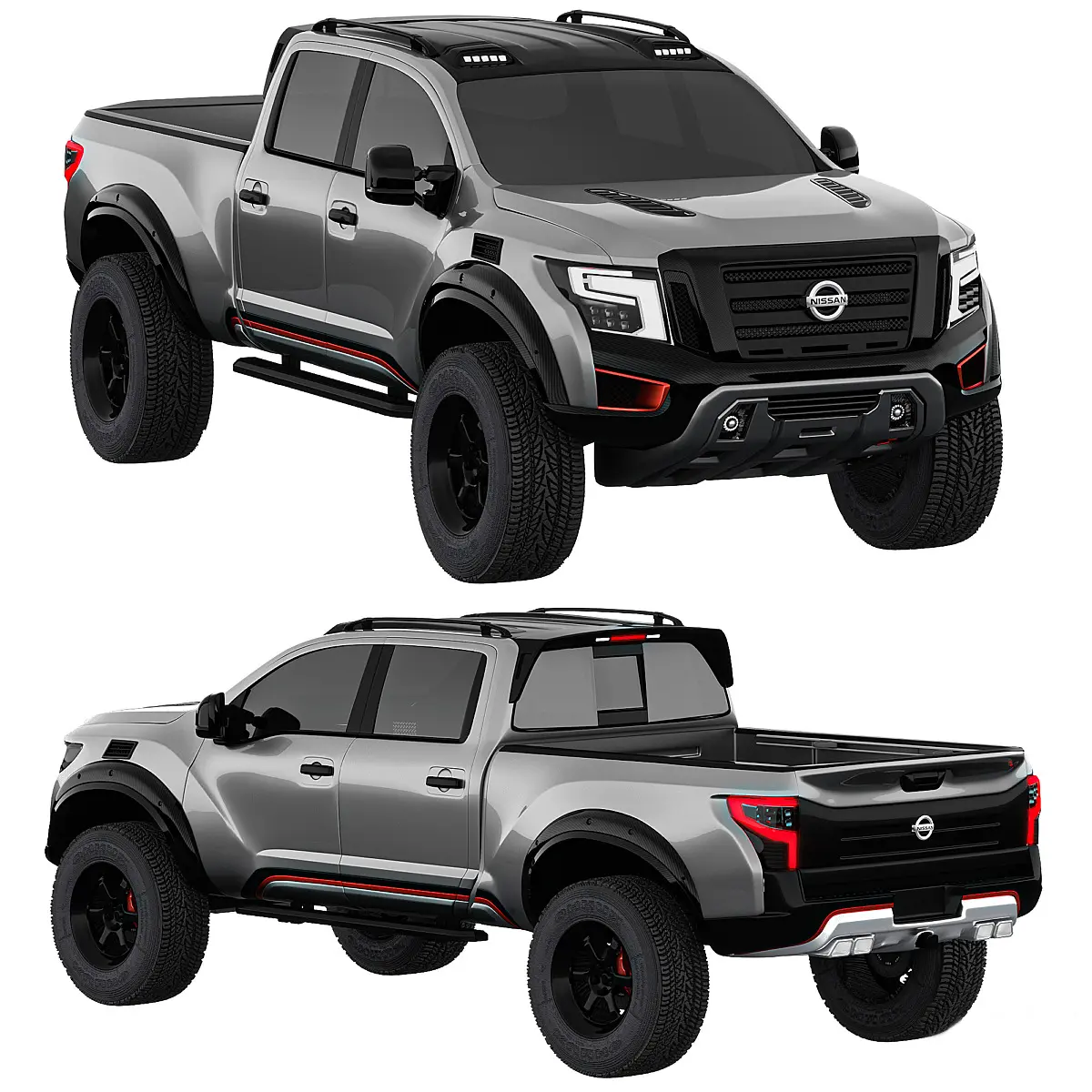 Name: Nissan Titan WarriorType: modelFormat: 3Ds Max 2016Export: FBX, OBJ, MATRender: Corona (5)Polys: 838149Verts: 850608Units: CentimetersDimension: 57.66 x 148.83 x 52.48