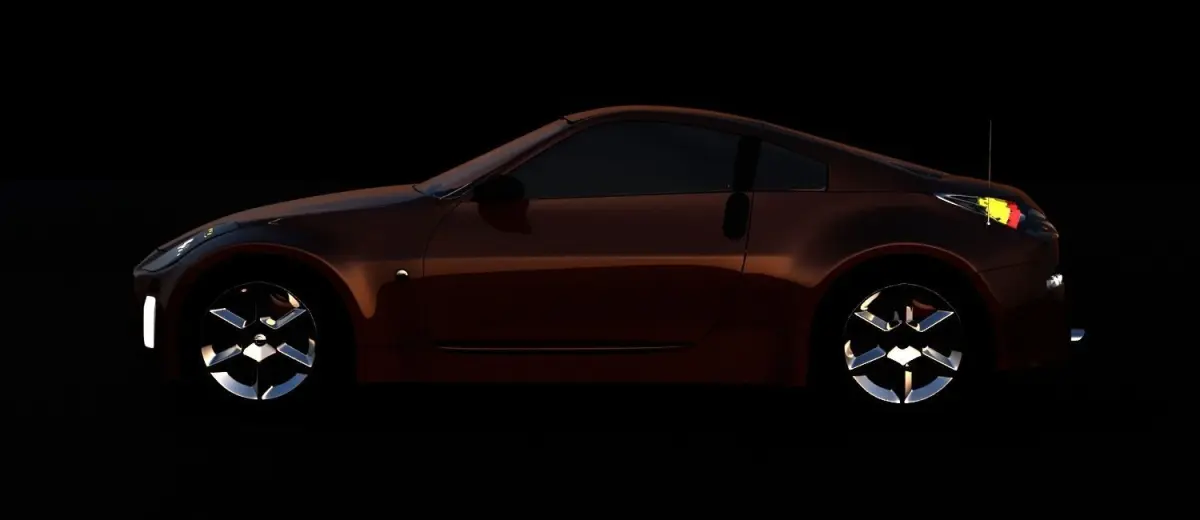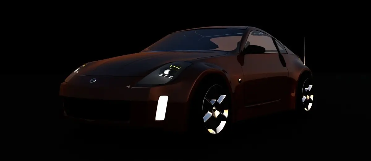 Nissan Z350 model in color Cafe, model has real scale, with finished lights, rims, rings and render vray