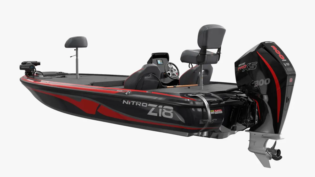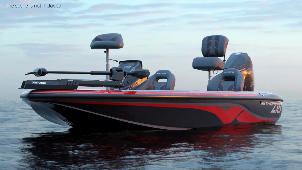 Nitro Z16 Sport Angler Boat Red Black is a three-dimensional model of angling deck boat, that is an open deck casting boat designed for recreational sport fishing, and freshwater activities.