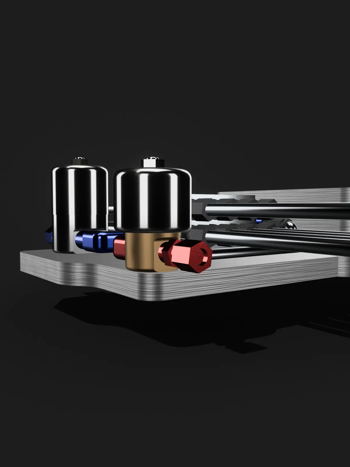Plate includes fittings, fuel & nitrous pipes, block and solenoids.