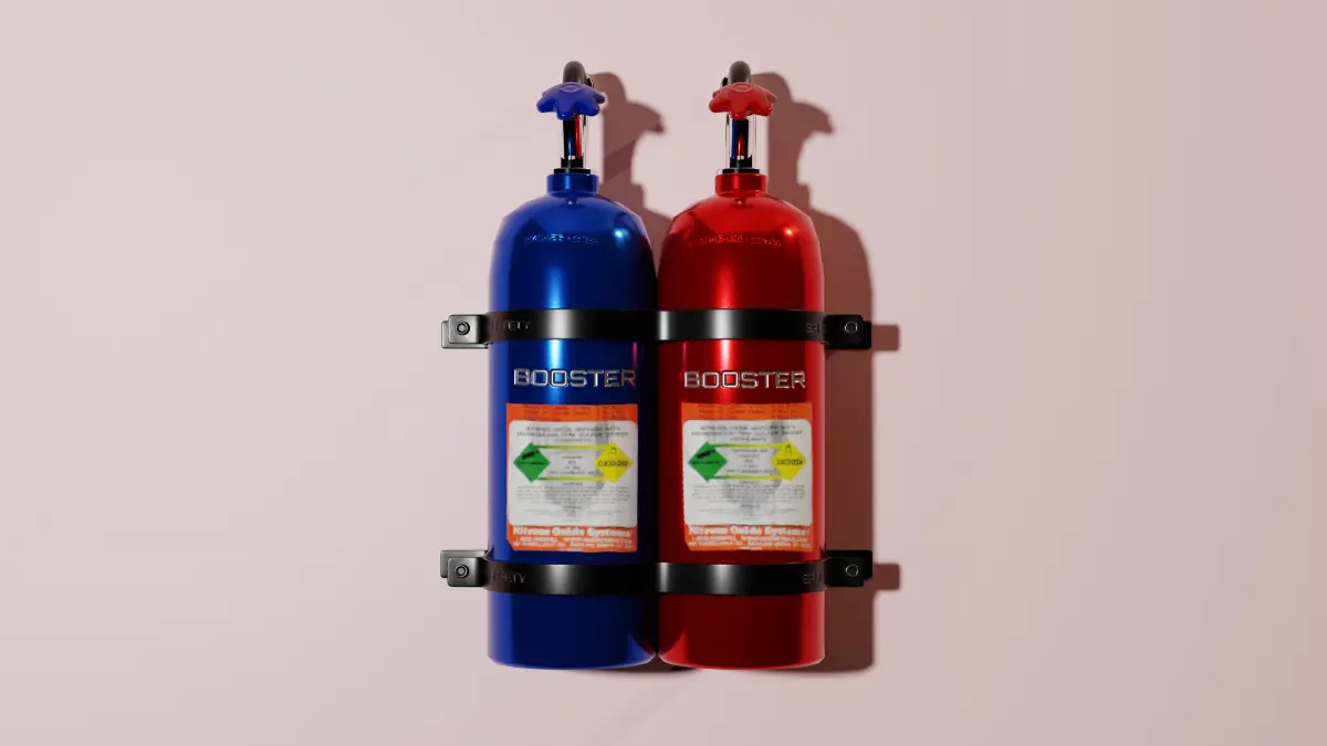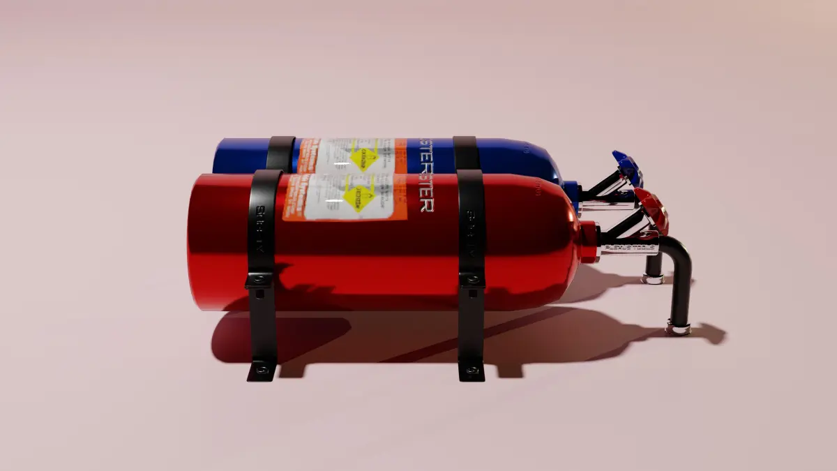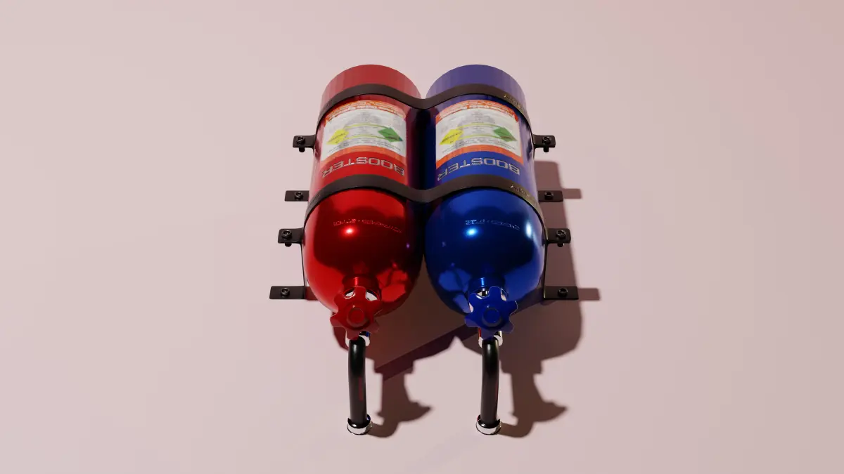 This high-quality 3D model represents a dual nitrous oxide booster tank system, commonly used in performance cars and racing setups. The model is ideal for use in games, simulations, car customization scenes, and animation projects. It comes in .glb format, ready for integration with Unity, Unreal Engine, and AR/VR environments.