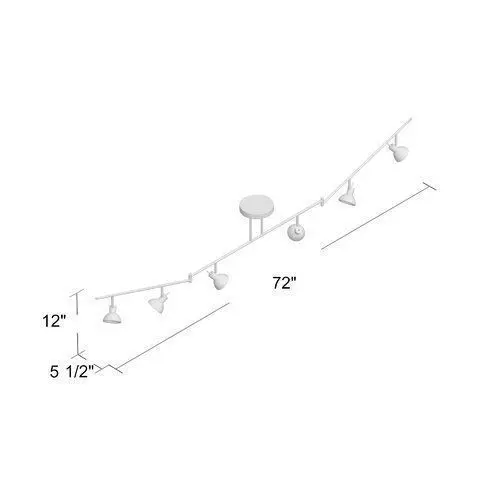 Overall Height - Top to Bottom12Overall Length - Side to Side72Overall Width - Front to Back5.5Overall Product Weight5.5The length of each section is 24"The clearance from the ceiling to the top of the swing arms is 7.25 inches.FeaturesSix swing track barProduct Type: Semi flush mountLight Direction: DownlightFixture Design: BowlSloped Ceiling Compatible: NoPower Source: HardwiredMotion Sensor: NoRecycled Content: NoPurposeful Distressing Type: No DistressingOverall Weight: 5.29 PoundsCanopy Included: YesCanopy Height - Top to Bottom: 1 InchesCanopy Width - Side to Side: 4.25 InchesCanopy Depth - Front to Back: 4.25 InchesProduct DetailsSystem Type: Swing Arm Track LightingMaximum Wattage (per bulb): 50 WattDry, Damp or Wet Location Listed: Dry