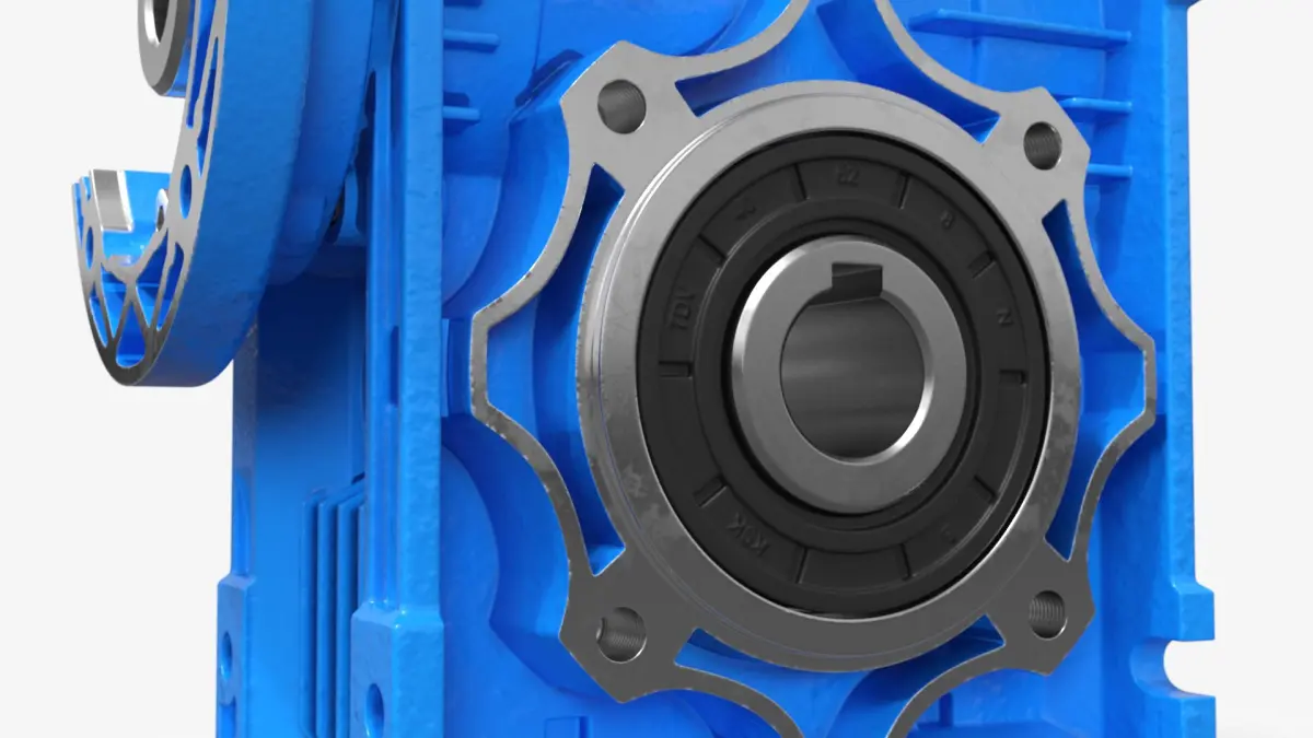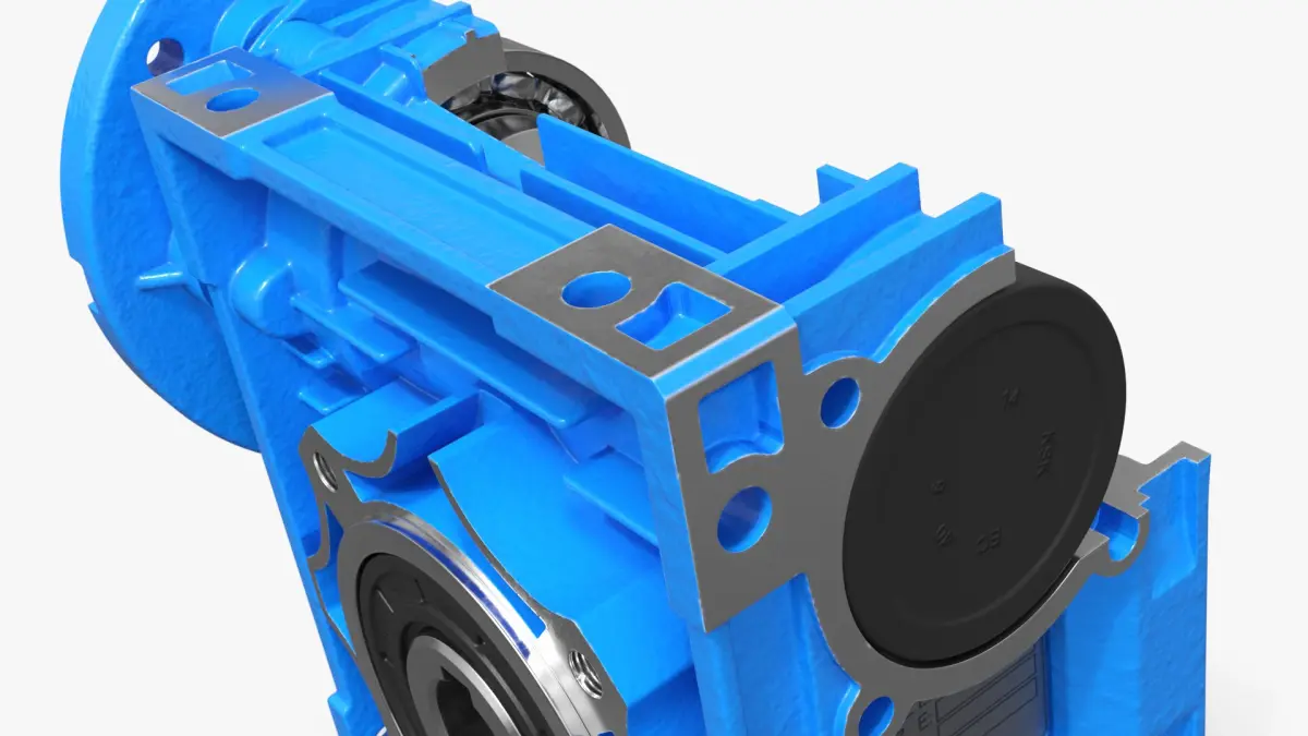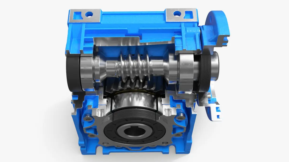 NMRV 040 Worm Gear Reducer in Cross Section is a three-dimensional model of mechanical component used to transmit torque and rotation between non-parallel shafts at a right angle.