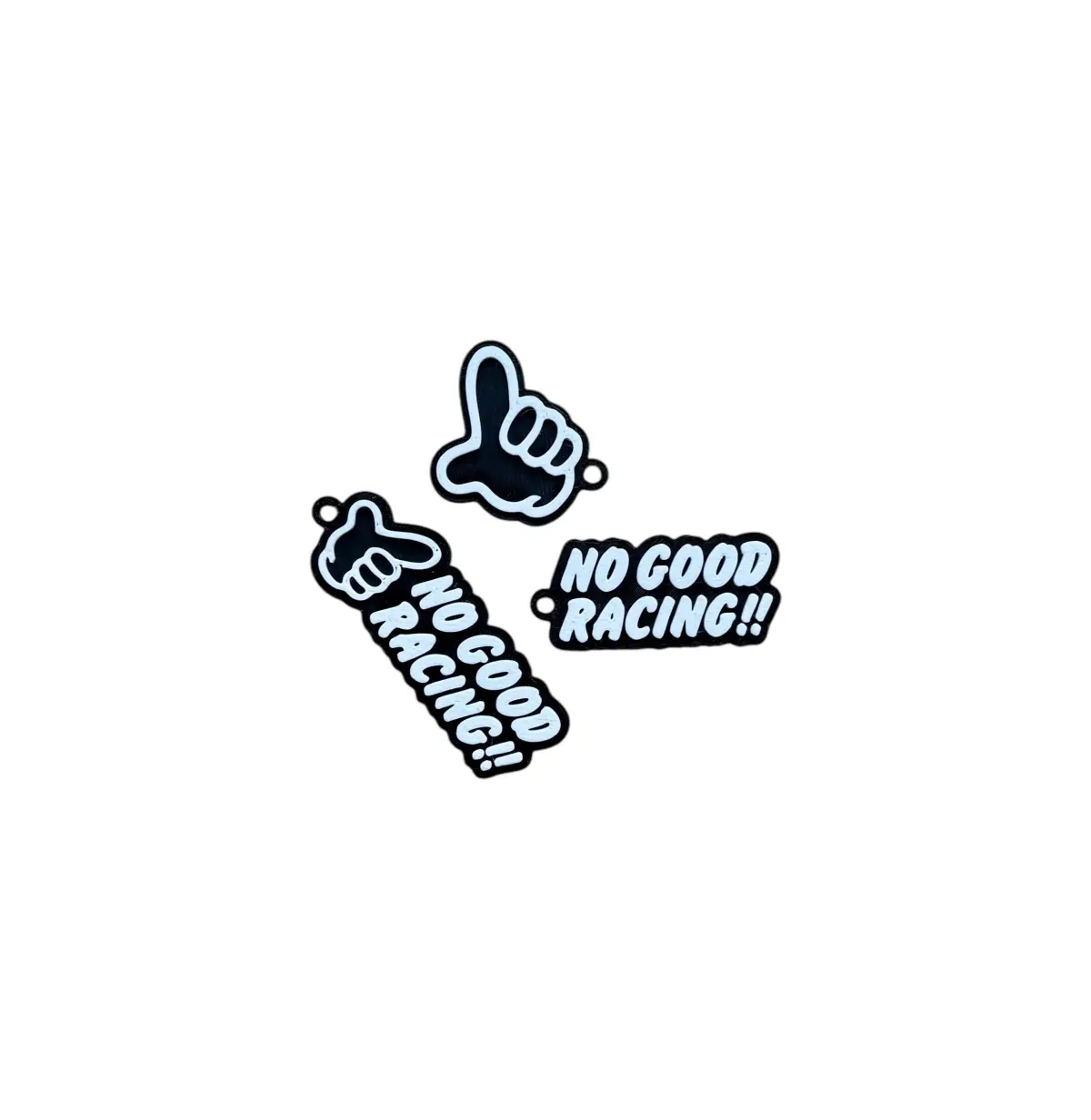 Logo with text – the full No Good Racing identity in one bold keychainLogo only – clean and simple, for a minimal lookText only – loud and clear, perfect for making a statementEach model is lightweight, easy to print, and makes a great addition to your keys, backpack, or car interior.