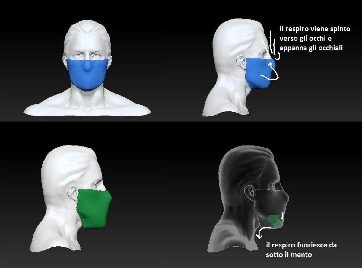 This is the tool i designed ti prevent my glasses getting cloudy because of the Mask.In the second picture i will show how breathe flow through different type of mask protection. That is a simulation from the Institute of Fluid Dynamics and Heat Transfer, TU Wien, Vienna, AustriaAs you can see the breathe flows thruogh masks and part of the air flow go against your eyes which are a sensible spot.