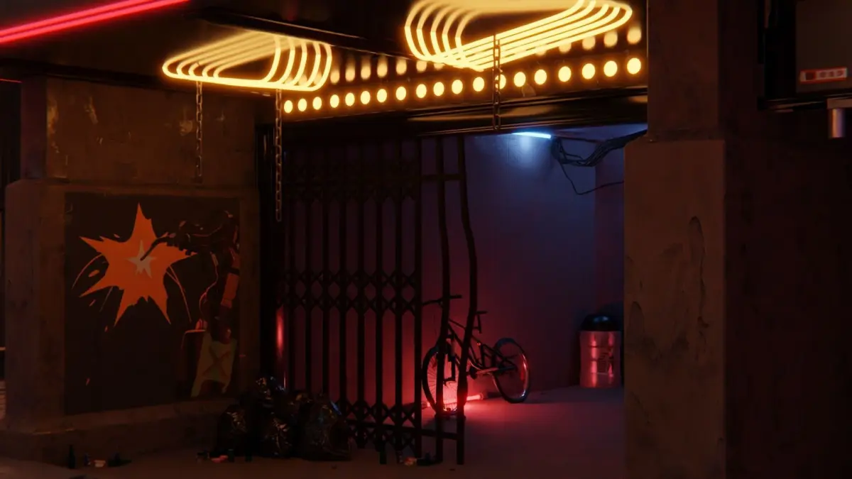 A well-detailed model of the No-Tell Hotel from Cyberpunk 2077, fully customized materials and lighting, great attention to detail, but no detailed interior.