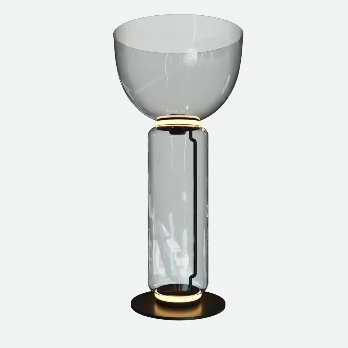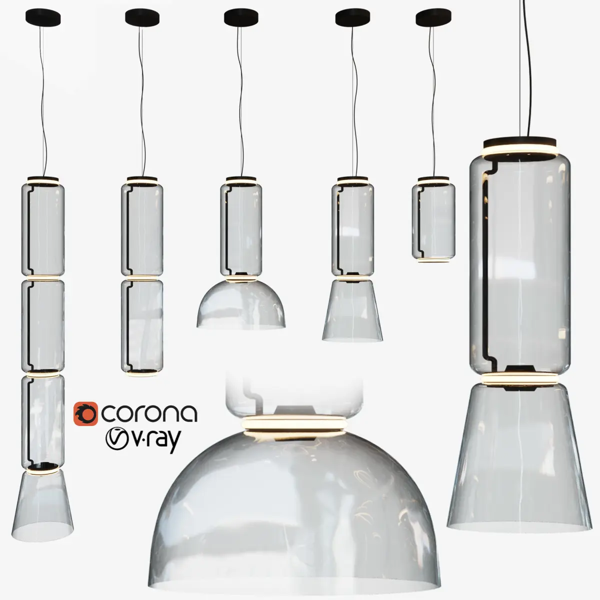 Noctambule: the night owl or reveller.Mostly invisible during the day, but coming to glamorous activity at night-time. The analogy is fitting. The new collection of lamps is made of blown glass modules, which are see-through and therefore almost inexistent at day-time. But, when you switch them on in the dark, they transform into georgeous, illuminated lamps. The cylindrical glass modules set the basic grammar of the collection. The single module is a lantern. Several modules stacked on top of each other create a light column, or suspended chandelier inside a stair well. Extra elements such a glass dome or cone shaped head allow for added performance such as a floorstanding uplighter and pendant.