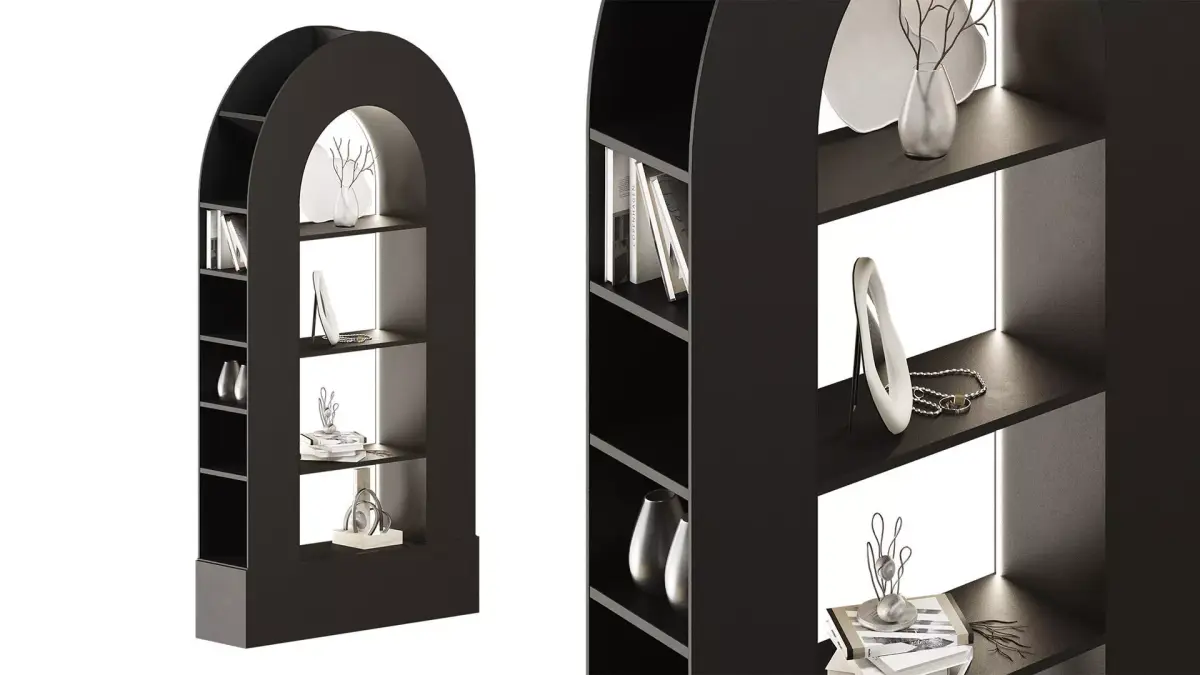 Perhaps you were looking for:bookcase, black bookcase, black shelf, semicircle, radius cabinet, curved mirror, jewelry organizer, salon filling, dressing room decor, hallway decor, jewelry organizer, wardrobe storage, jewelry, bracelet, earrings, glass vase with branches, decor storage, chain, women's wardrobe, accessories display case, store display case, book, sculpture, black cabinet