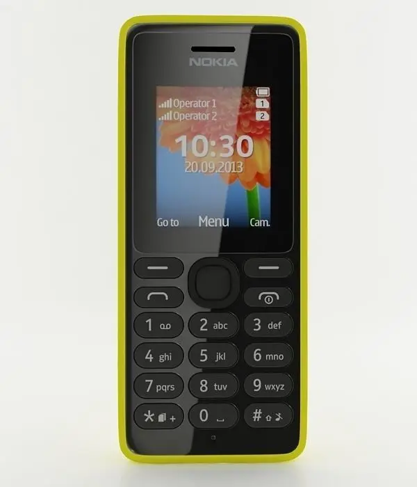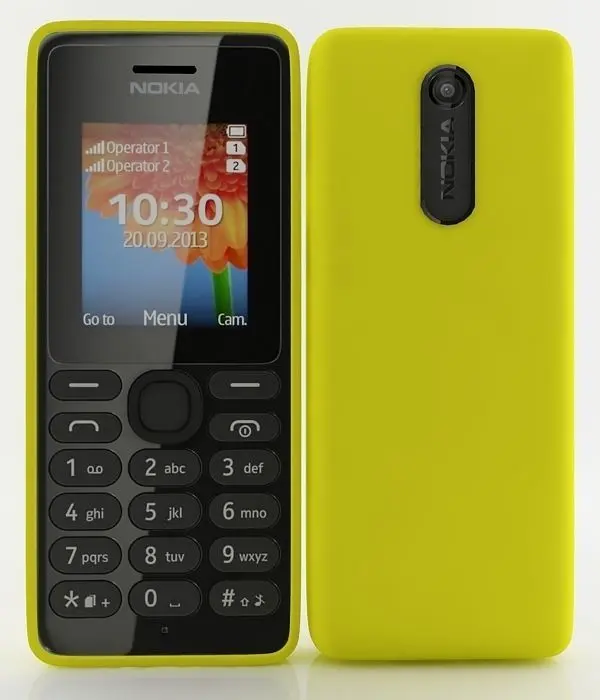 Realistic 3D model of the Nokia 108 dual sim yellow .