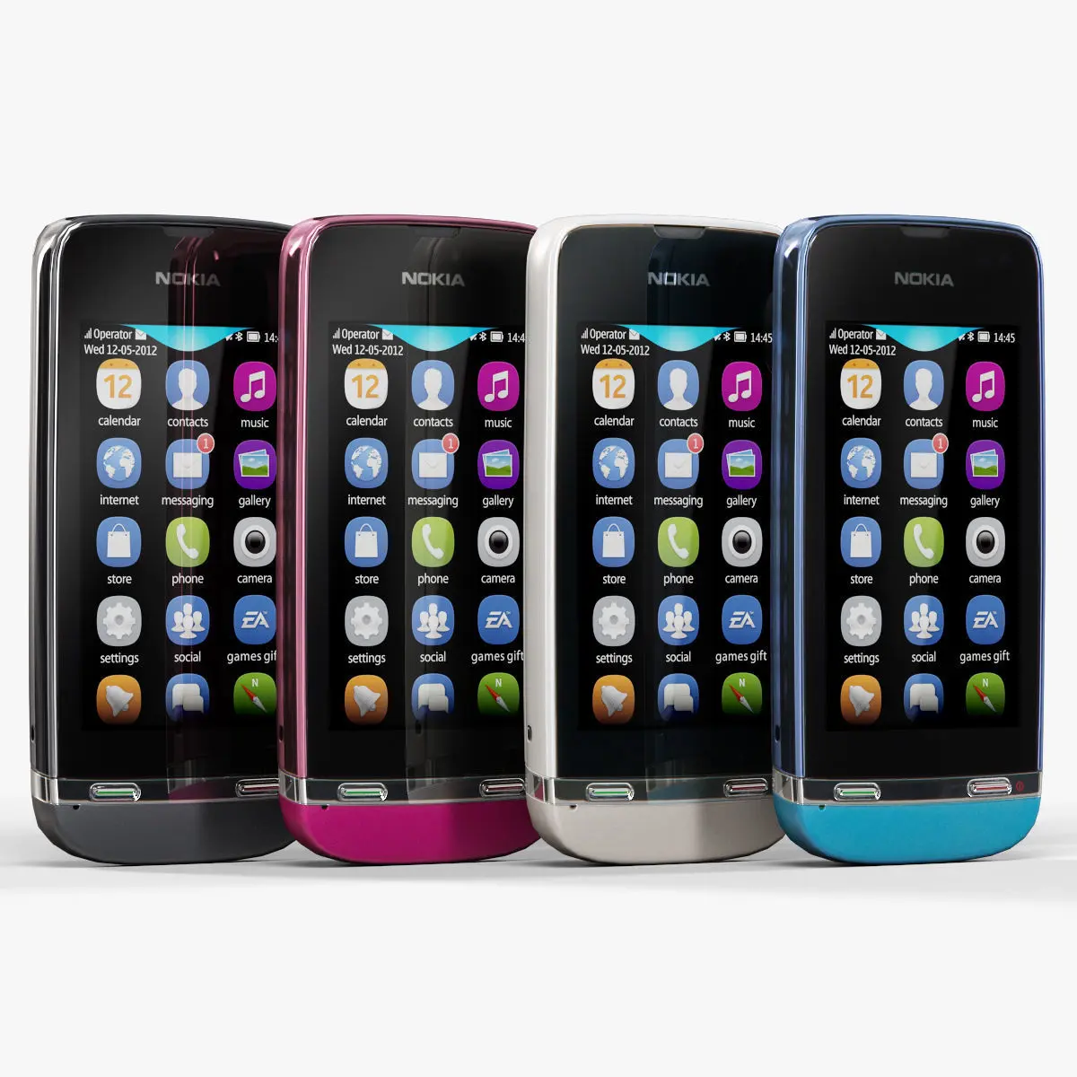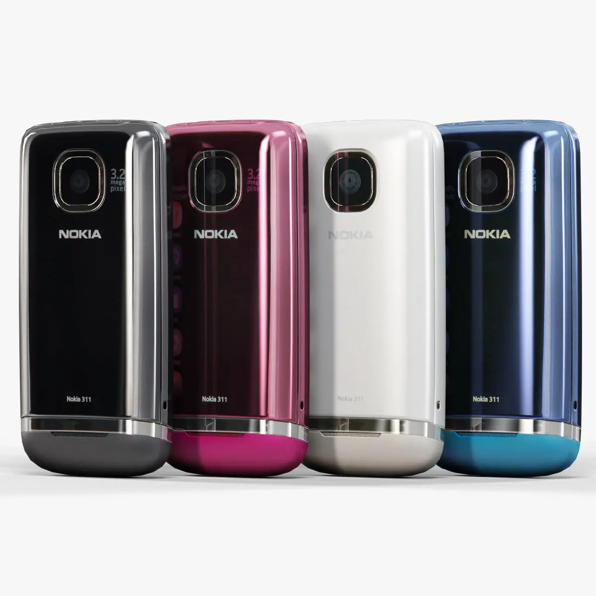 • Let me present to you high-quality low-poly 3D model Nokia Asha 311. This model can be used in various fields 3D Graphics such as game development, advertising, interior design, motion picture art, visualization, etc.. Model is presented in five colors: Rose Red, Dark Grey, Blue, Sand White and Sand White Charme. Modeling was made with ortho-photos of real phone that is why all details of design are recreated most authentically.