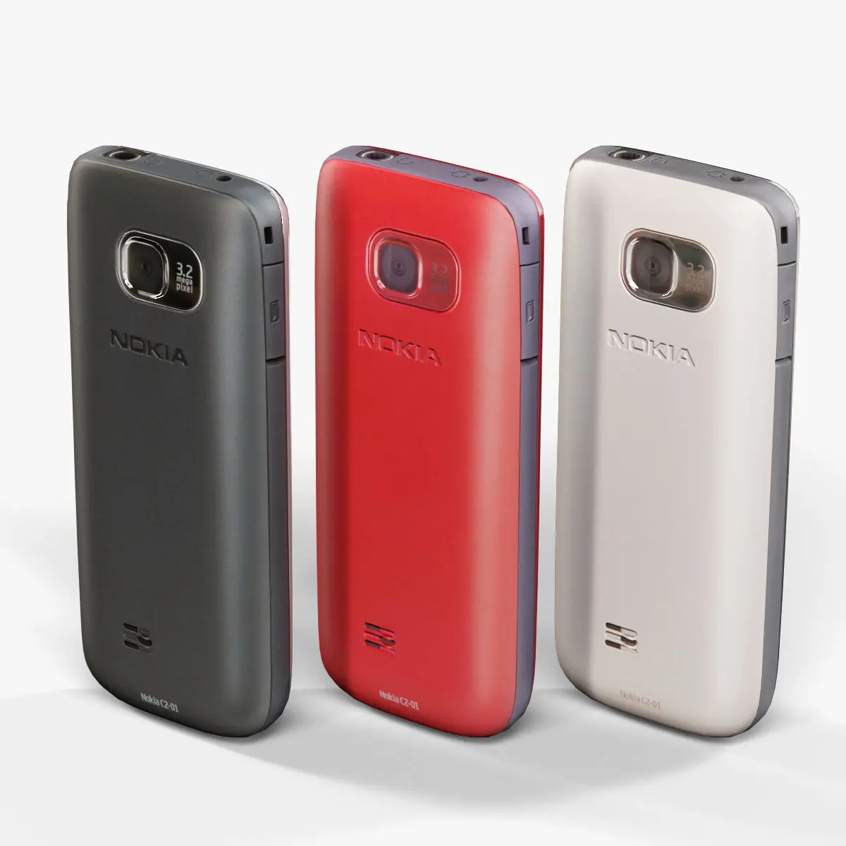 • Let me present to you high-quality low-poly 3D model Nokia C2-01. This model can be used in various fields 3D Graphics such as game development, advertising, interior design, motion picture art, visualization, etc.. Model is presented in three colors: Red, Black and Warm Silver. Modeling was made with ortho-photos of real phone that is why all details of design are recreated most authentically.