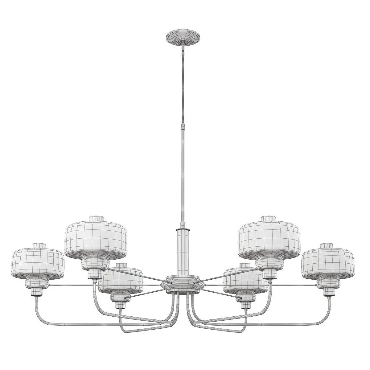 The Nola Pendant combines mid-century Victorian and mid-century modern resulting in a contemporary take on classic hurricane glass fixtures. Available in Soft Gold, Vintage Platinum, Black, Mahogany, Burnished Steel, Bronze, Natural Iron, or Dark Smoke with Clear outer shades and inner frosted hurricane shades or Frosted outer shades and inner clear hurricane shades. Six 60 watt max 120 volt B10 candelabra base bulbs are required, but not included. 42.4 inch width x 12.6 inch height x 25.4 inch depth 39.8-51.1 inch adjustable length. Canopy: 5 inch diameter. Slope ceiling adaptable up to 45 degrees. UL listed for indoor damp locations. Made in the USA.