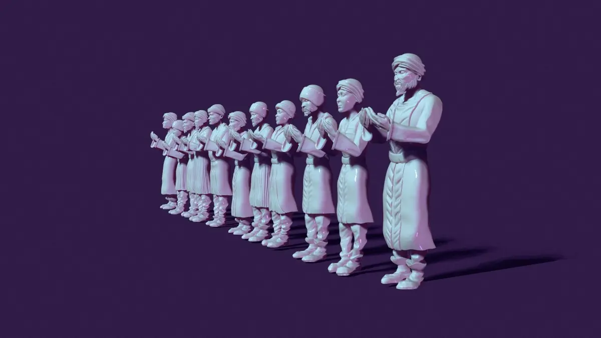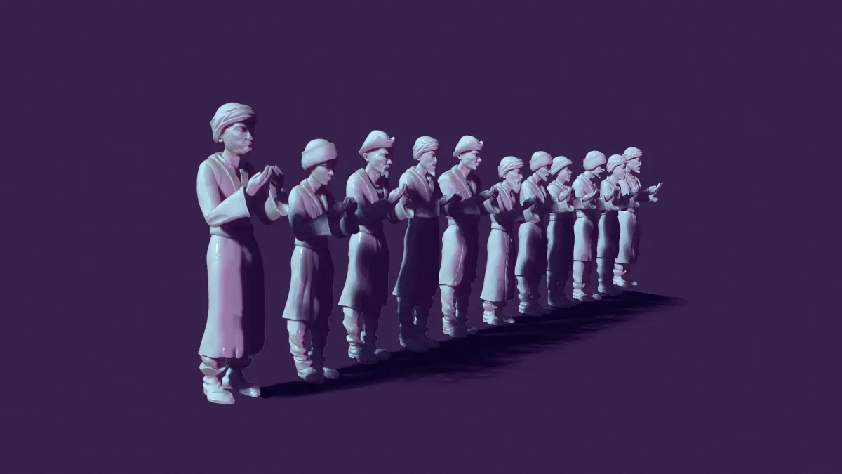 Nomads in prayer, in clothes of the 14th-16th centuries, created for extras. Each person is made as a single piece. Height no more than 45mm. You can scale them however you like.