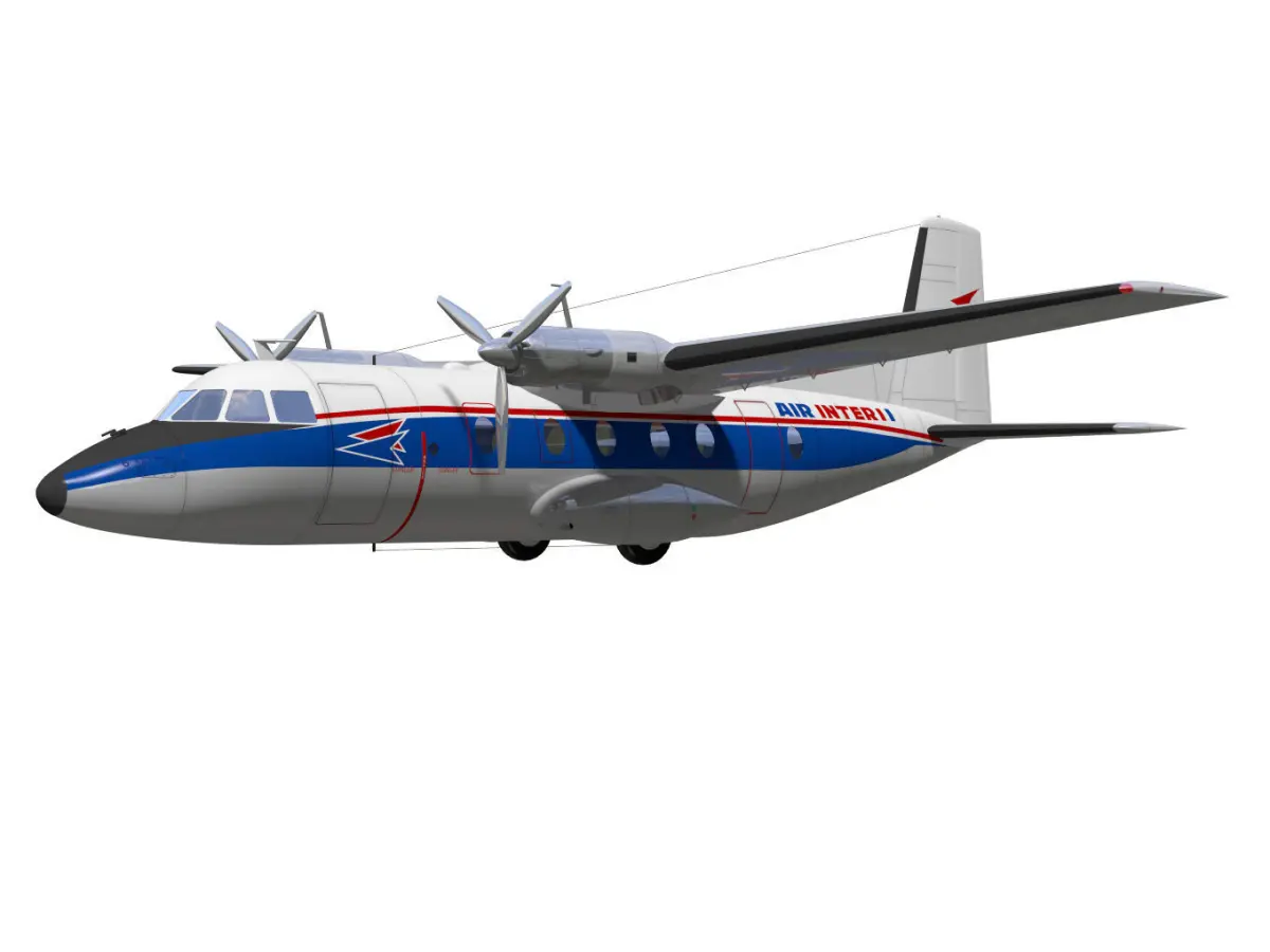 The Nord 262 is a turboprop airliner that first flew in 1960 and was used in many countries.The model markings are for an AIR INTER aircraft.The internal structure of the fuselage is not modeled.The model's landing gear is divided into parts for flight and landing conditions.(They are in the folder gopen.gclose).The texture of the original data may have changed due to export.Parts of moving parts are separated. However, please note that the rig is not reflected.This model is not intended for use in games or other low-polygon applications.This model is not for 3D printing.Please be careful when purchasing.