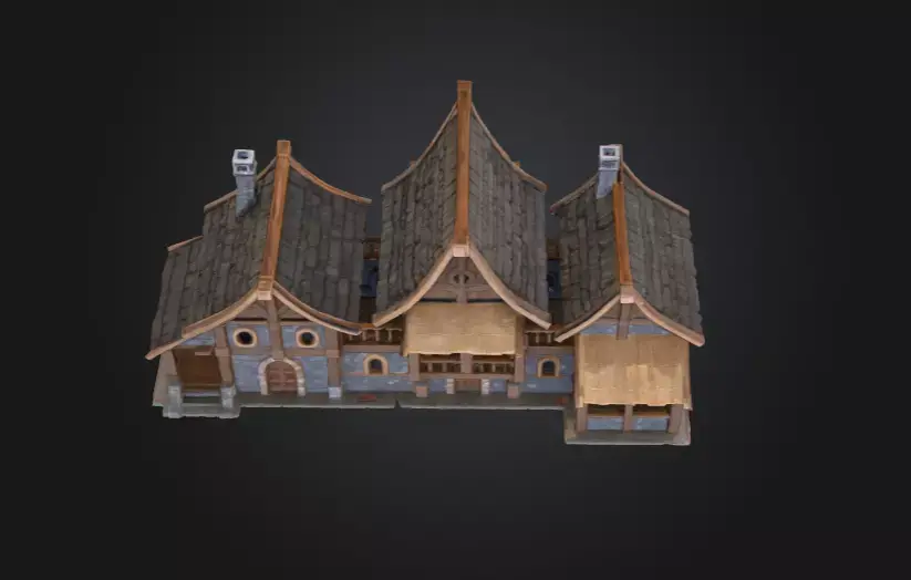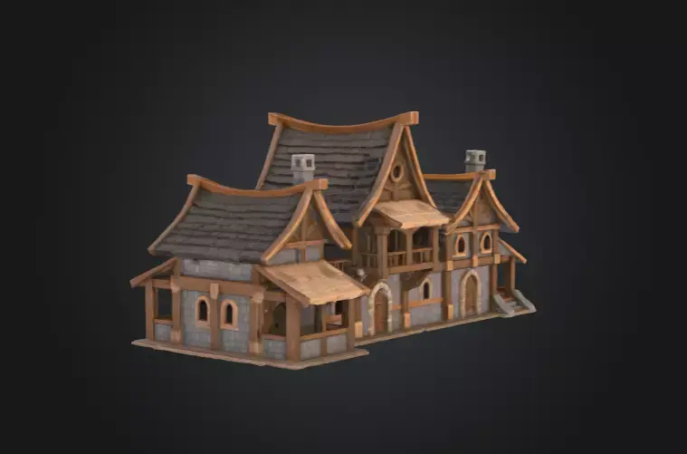The building features richly textured wooden beams, steep gabled roofs, and hand-carved details that reflect the artistry of Nordic design. Subtle wear and snow-weathered surfaces enhance authenticity, while ambient occlusion and PBR material setup ensure realistic lighting and reflections. The large windows and stone foundation balance elegance with rugged practicality — ideal for rendering natural landscapes, ski villages, or fantasy worlds set in cold regions.