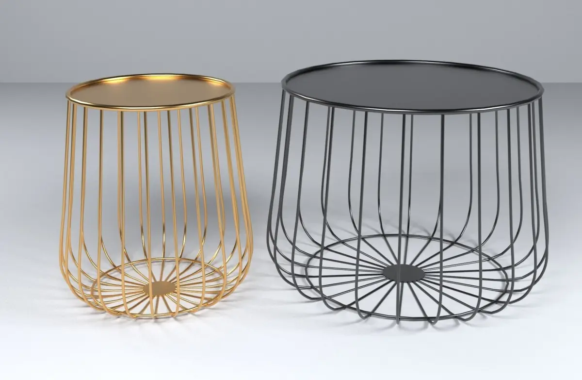 This table is timeless and great for many interior styles. The tables' body consist of a curved metal wires which are arranged in an array pattern, top with a thin yet classy top. These complemtary tables come in gold and black.