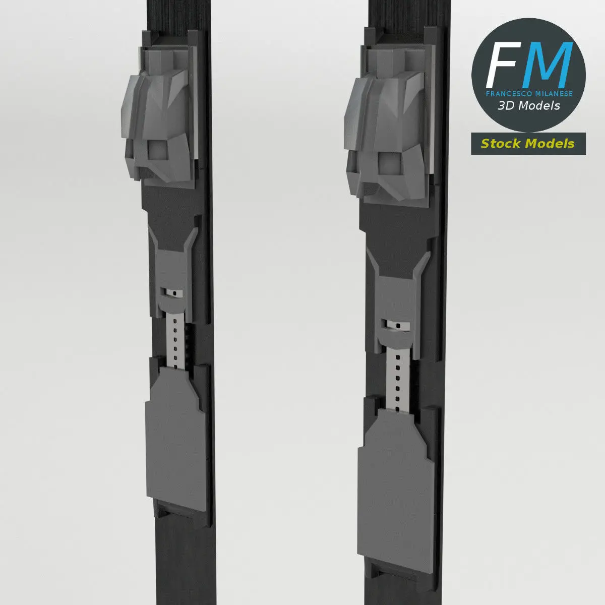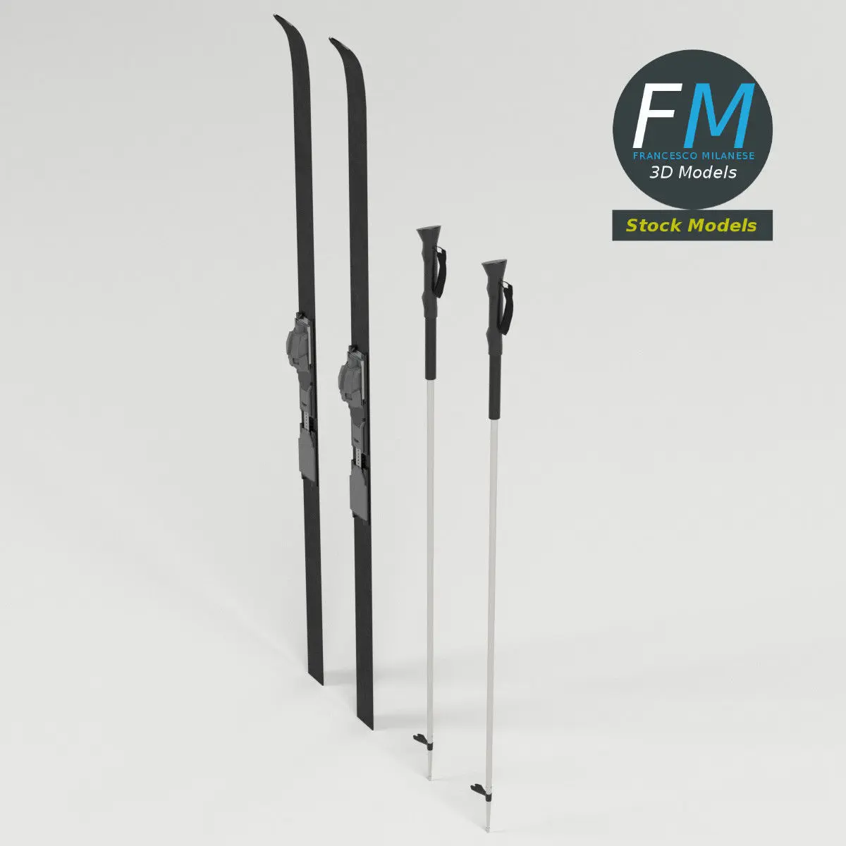 Nordic skis with poles 3D Model. 4 objects sharing 2 non overlapping UV Layout maps, Materials (skis, poles) and PBR Textures set. Production-ready 3D Model, with PBR materials, textures, non overlapping UV Layout map provided in the package.
