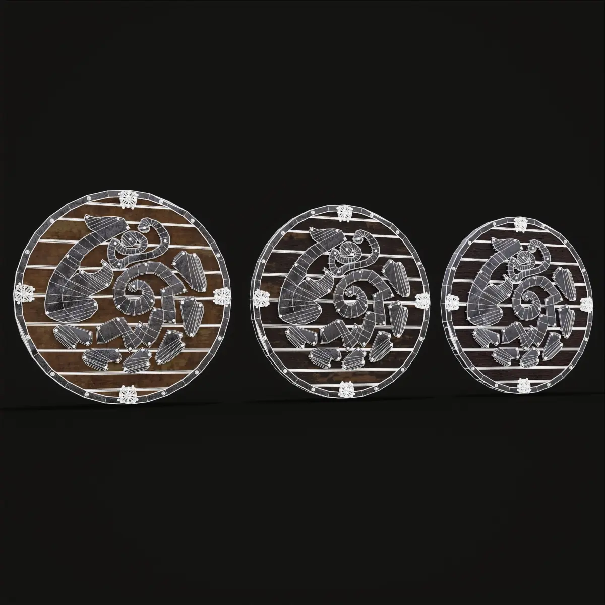 Nordic Wild Steed Shield 3D Model - Files Include FBX and OBJ. Includes PBR Texture in 4096 x 4096. Texture is made using a Trimsheet pipeline for optimization and therefore has overlapping UVs. - Maps include : Basecolor, Normal, Roughness, Height and Metallic. All Preview renders were done Marmoset Toolbag 4 Scaled to real world scale. Customer Service Guaranteed. From the Creators at Get Dead Entertainment. Please like and Rate! Follow us on FaceBook and Instagram to keep updated on all our newest models.