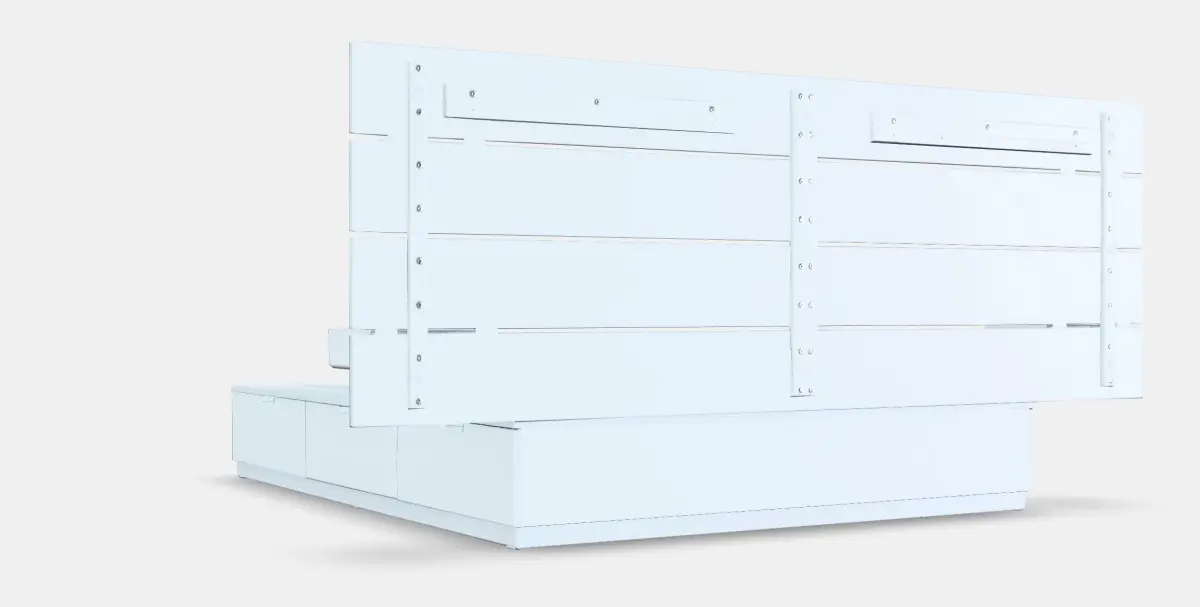 Enhance your 3D designs with the NORDLI Bed frame w storage and headboard model, equipped with integrated PBR materials and no need for third-party plugins.