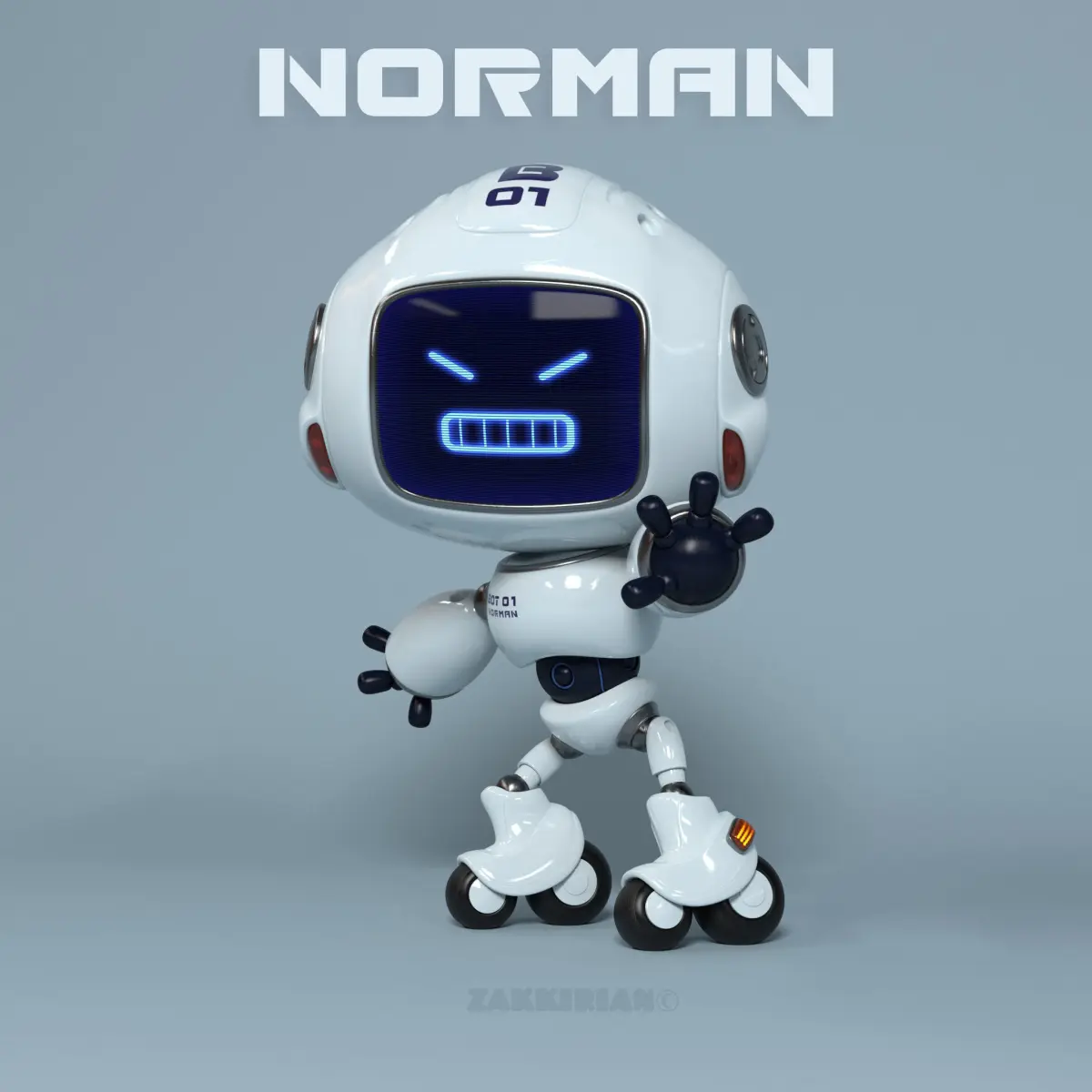 Hello everyone! Meet a new character named Norman. This is the robot helper, aka Bot-01 in the new robot collection. The robot can run, walk, roller skate and jump, waving his little arms. He can rotate his head on all axes without restriction, because he is a moving robot! :)He has 35 emotions and the ability to add an unlimited number of facial expressions, giving a wide range of emotions to convey information from his face-interface! It is enough to open the original .PSD file and draw a simple picture as you want and save it in the folder with the rest of the emotions with the same name, only with the following numbering and that's it!