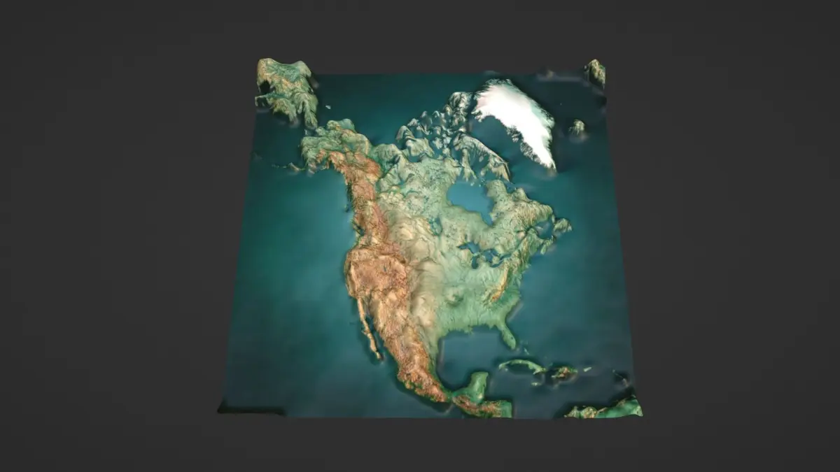 North America Map Topography Low-poly 3D model