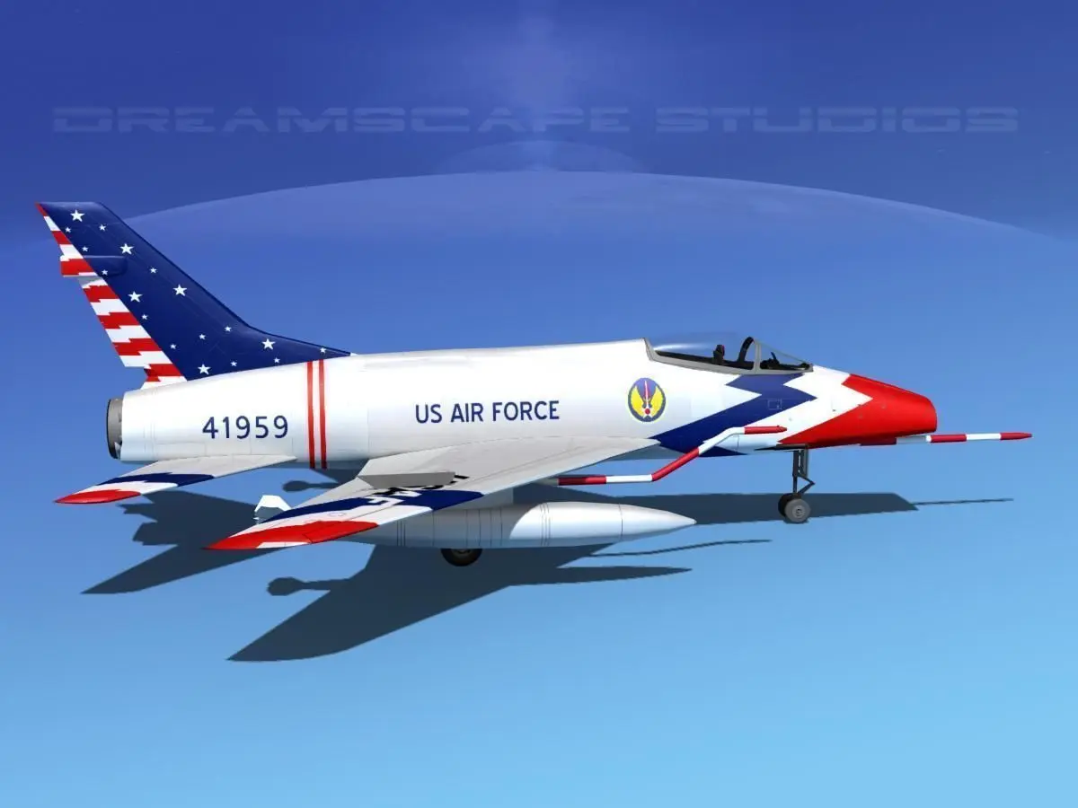This Super Sabre was built very near to scale and is fully textured. Many features are animateable including ailerons, flaps, rudder and elevators, main and tail landing gear and doors. This model is detailed to include cockpit (viable through the class). Model is provided in different formats.
