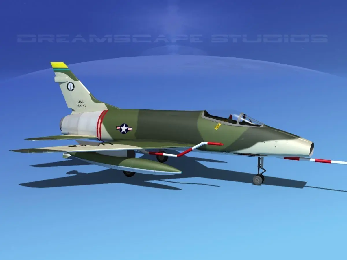 This Super Sabre was built very near to scale and is fully textured. Many features are animateable including ailerons, flaps, rudder and elevators, main and tail landing gear and doors. This model is detailed to include cockpit (viable through the class). Model is provided in different formats.
