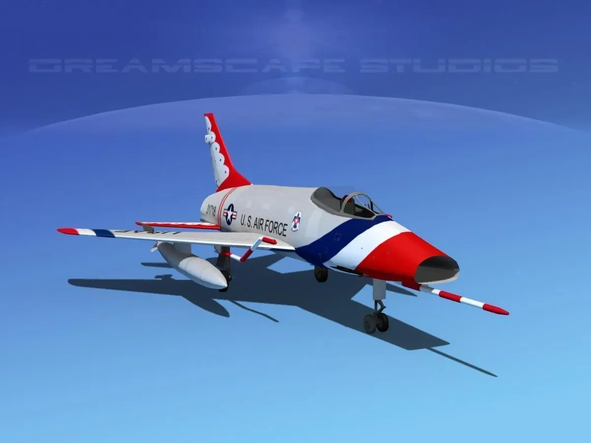 This Super Sabre was built very near to scale and is fully textured. Many features are animateable including ailerons, flaps, rudder and elevators, main and tail landing gear and doors. This model is detailed to include cockpit (viable through the class). Model is provided in different formats.