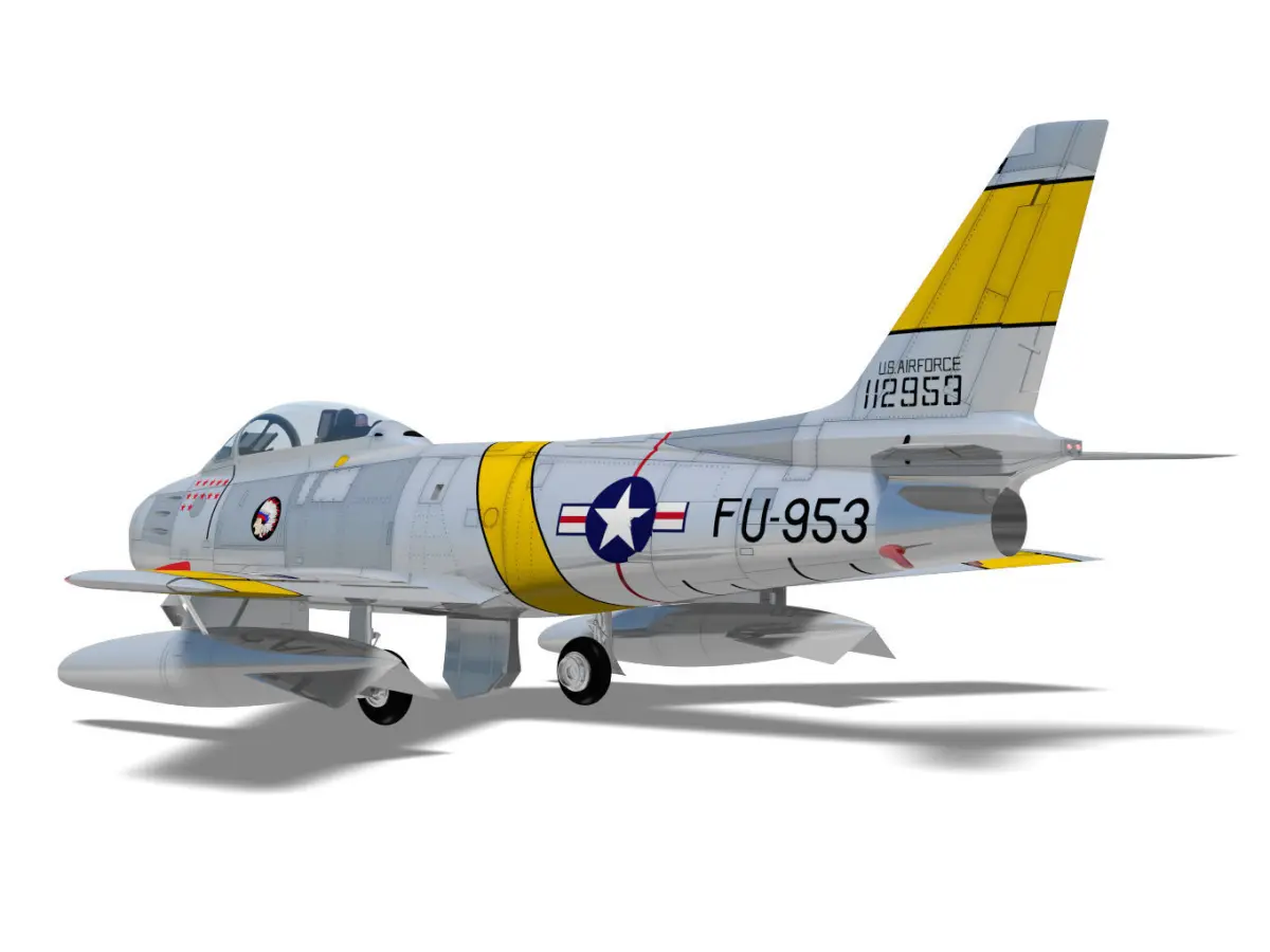 This American jet fighter was used in many countries from the 1950s onward.The model's Landing Gear is divided into parts for flight and landing conditions.Cockpit modeling is simple.The texture of the original data may have changed due to export.