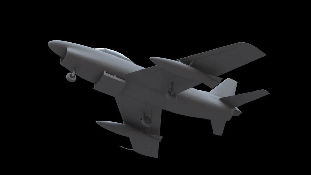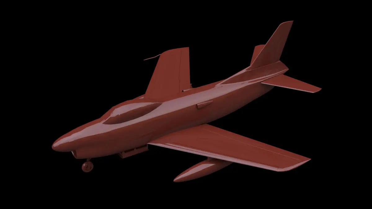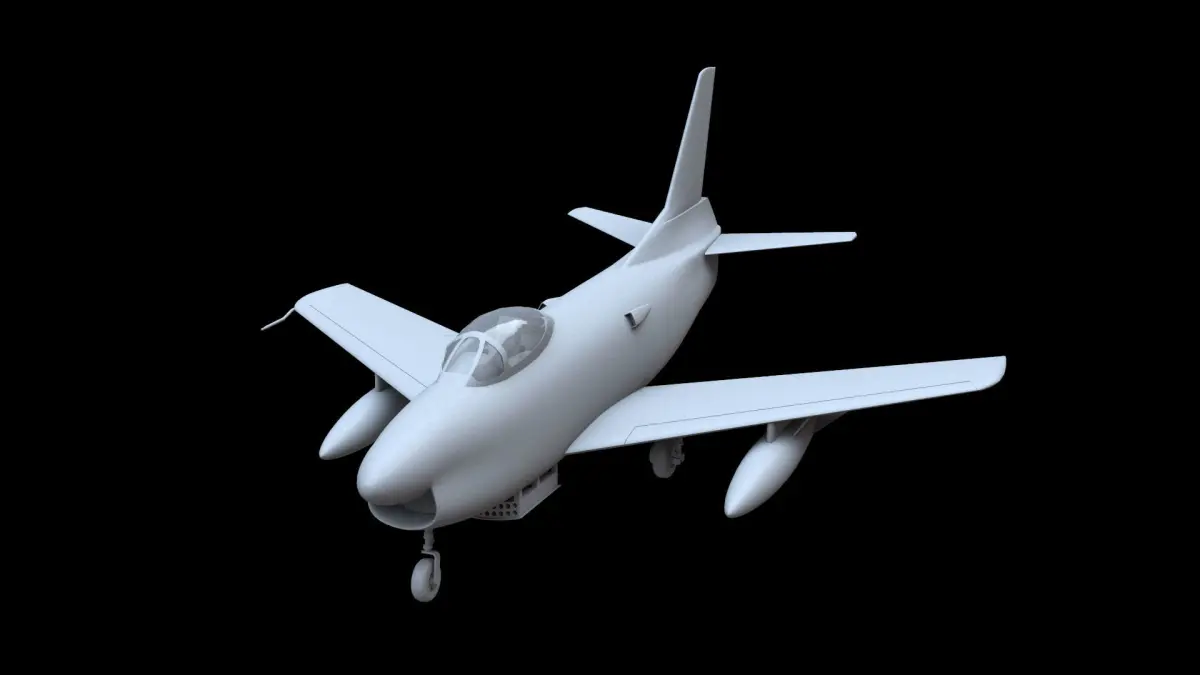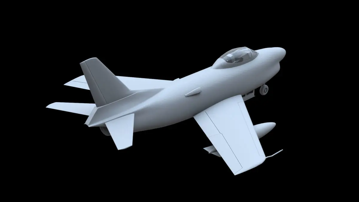 North American F-86D Sabre Dog fighter aircraft. Model is available as JAS, GLTF, FBX, OBJ and DAE. Movable control surfaces, canopy, landing gear and doors. Payload: rocket rack and fuel tanks.