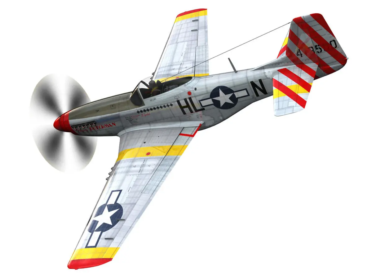 The North American Aviation P-51 Mustang was a long-range single-seat World War 2 fighter aircraft. Designed, built and airborne in just 117 days, the Mustang first flew in RAF service as a fighter-bomber and reconnaissance aircraft before conversion to a bomber escort, employed in raids over Germany, helping ensure Allied air superiority from early 1944. The P-51 was in service with Allied air forces in Europe and also saw limited service against the Japanese in the Pacific War. The Mustang began the Korean War as the United Nations main fighter, but was relegated to a ground attack role when superseded by jet fighters early in the conflict. Nevertheless, it remained in service with some air forces until the early 1980s.