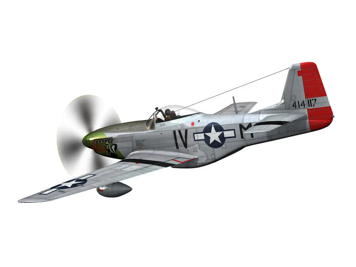 The North American Aviation P-51 Mustang was a long-range single-seat World War 2 fighter aircraft. Designed, built and airborne in just 117 days, the Mustang first flew in RAF service as a fighter-bomber and reconnaissance aircraft before conversion to a bomber escort, employed in raids over Germany, helping ensure Allied air superiority from early 1944. The P-51 was in service with Allied air forces in Europe and also saw limited service against the Japanese in the Pacific War. The Mustang began the Korean War as the United Nations main fighter, but was relegated to a ground attack role when superseded by jet fighters early in the conflict. Nevertheless, it remained in service with some air forces until the early 1980s.