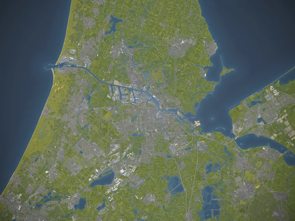 This is exact and accurate to scale 3D model of North Holland province area based on GIS data (June 2020)