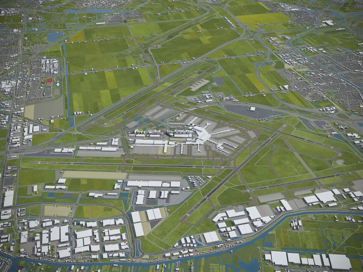 - Trees, vegetation, landuse and airport surface with the textures assigned