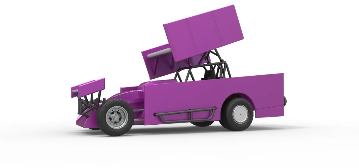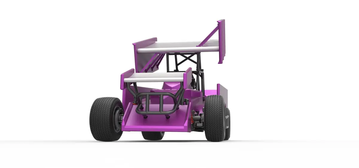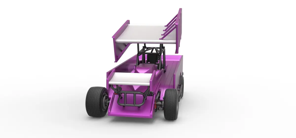 The model consists of parts: Air intake part 1-3, Body, Engine left part, Engine main part, Engine right part, Front bumper, Front left rim, Front left tire, Front right rim, Front right tire, Front wing, Left exhaust pipes, Left exhaust tube, Radiator, Rear left tire, Rear right tire, Rear rims, Right exhaust pipes, Right exhaust tube, Rim covers, Seat part 1,2, Shell left part, Shell main part, Shell right part, Shifter, Steering wheel, Tank, Top wing.