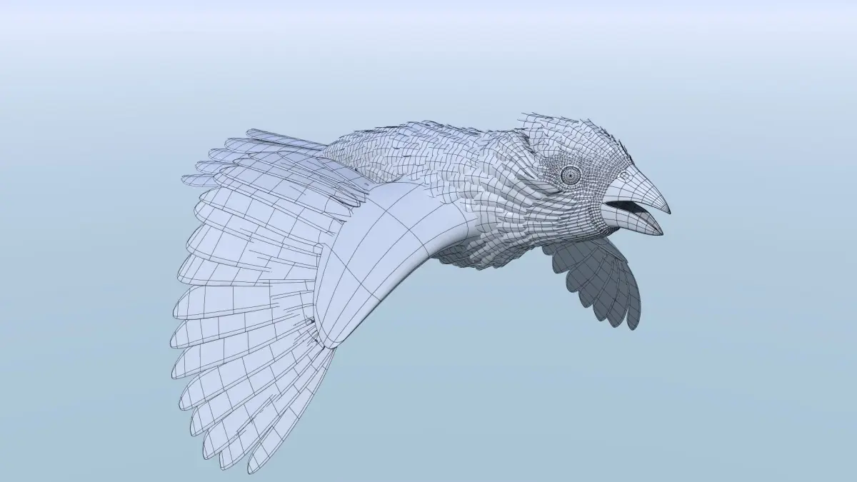 You can also make adjustments, like spreading the wing tip feathers and spreading the tail using morph targets.