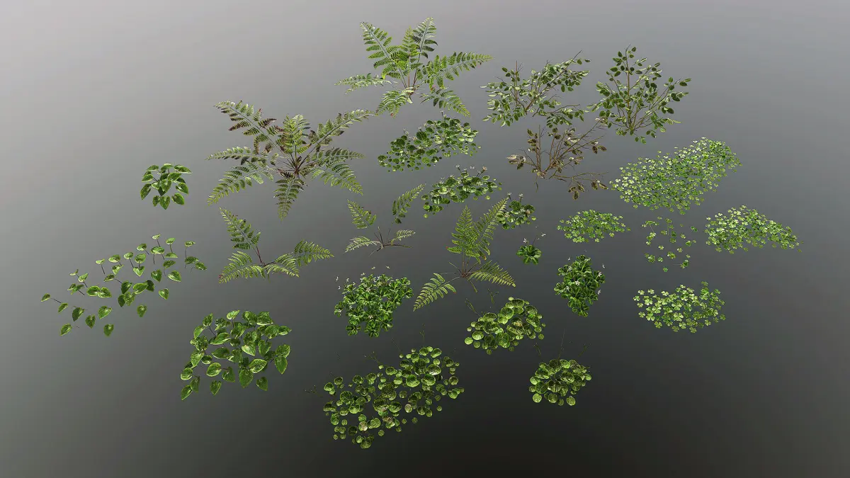 • 25 small plants, bushes, ferns, clover patches, flowers and ground plants