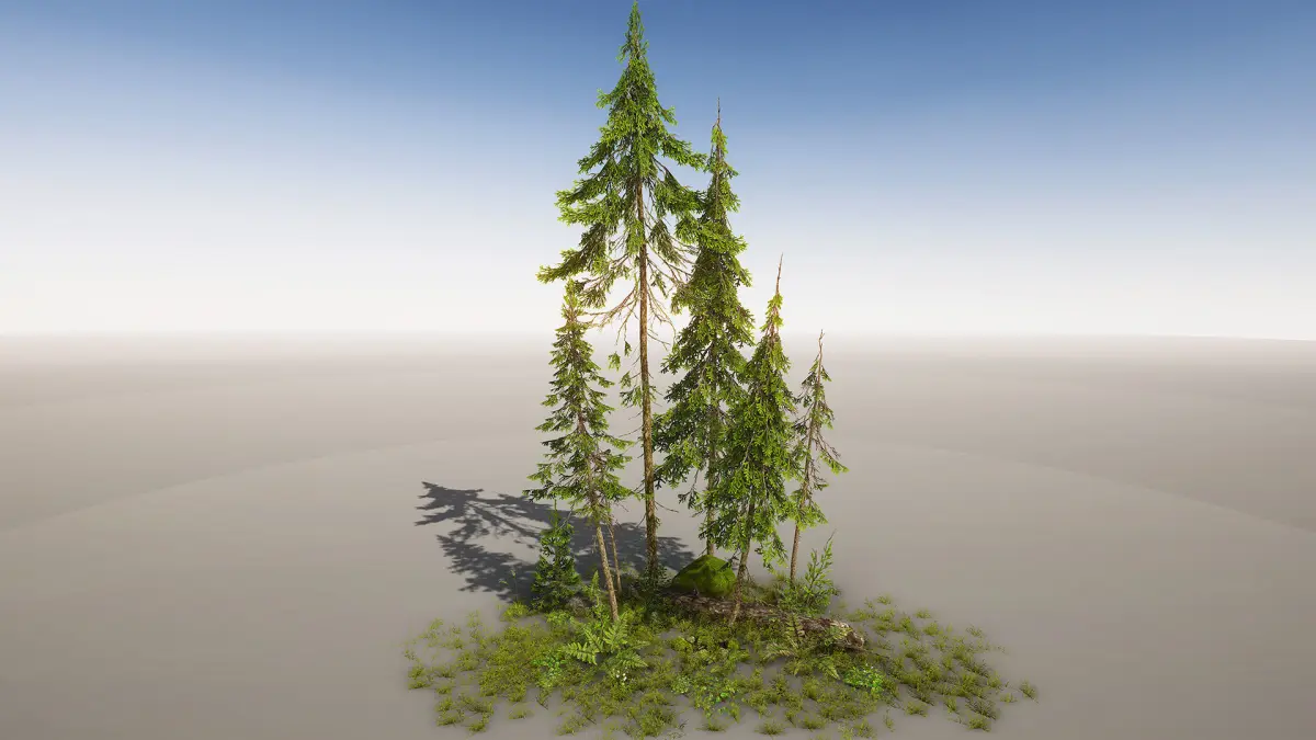 • 14 spruce trees, 3 saplings, 3 small, 4 medium and 4 large trees among two distinct material types, complete with LODs and billboards