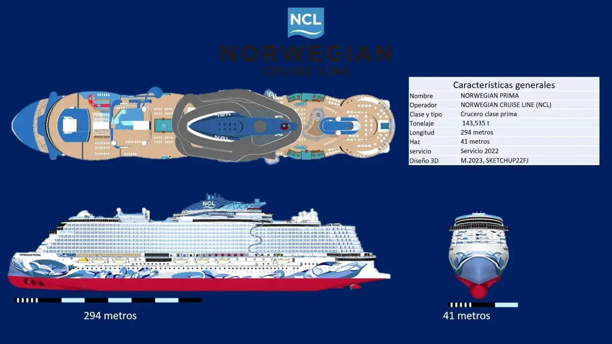 El norwegian prima pertenece a NCL Norwegian cruise line no contiene interiores solo puente de mando...
