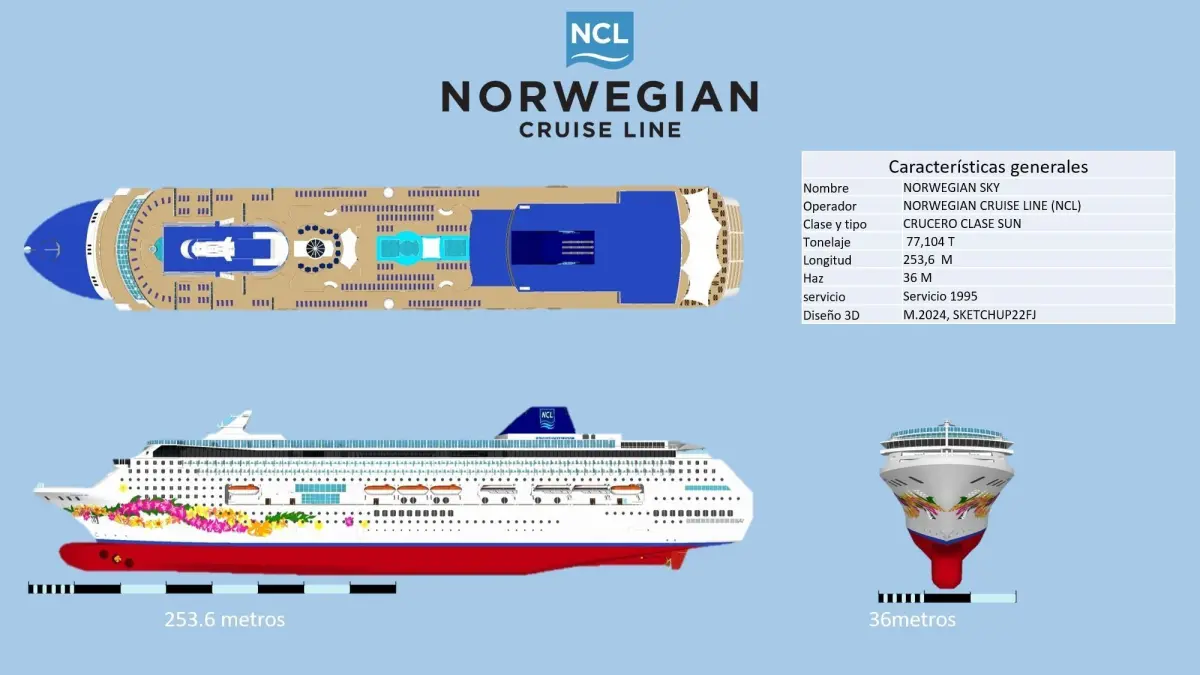 NORWEGIAN SKY 3D-DECK BOAT-PUENTE DE MANDO-ATRIUM-PANORAME SALON-DECK POOL