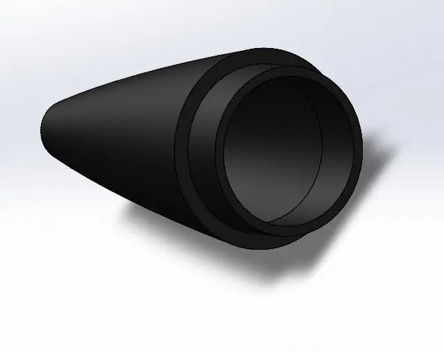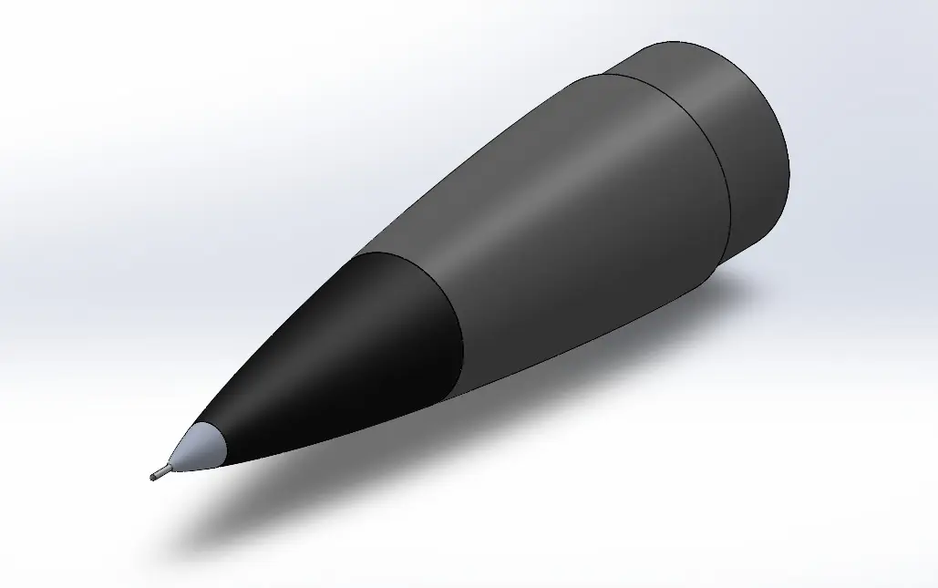 The geometry was generated via MATLAB and modeled in SolidWorks for high-fidelity export and production. The shape ensures smooth airflow and optimal aerodynamic performance for subsonic and supersonic regimes.