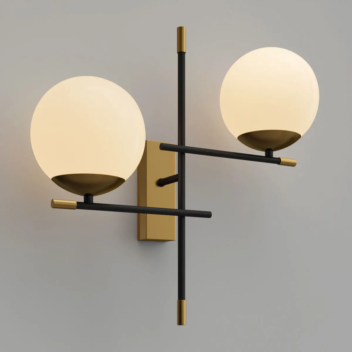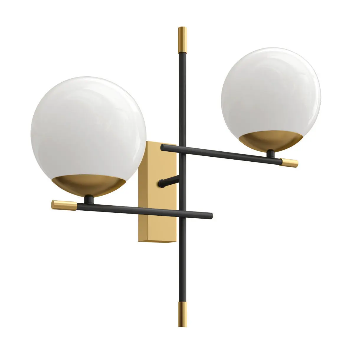 This elegant wall lamp is a perfect addition to any modern living space, offering a blend of style and functionality. The fixture showcases a sophisticated design with a sleek black and gold combination, crafted from durable metal. Its refined look is further enhanced by the soft white lampshades, which add a sense of warmth and sophistication to any room.