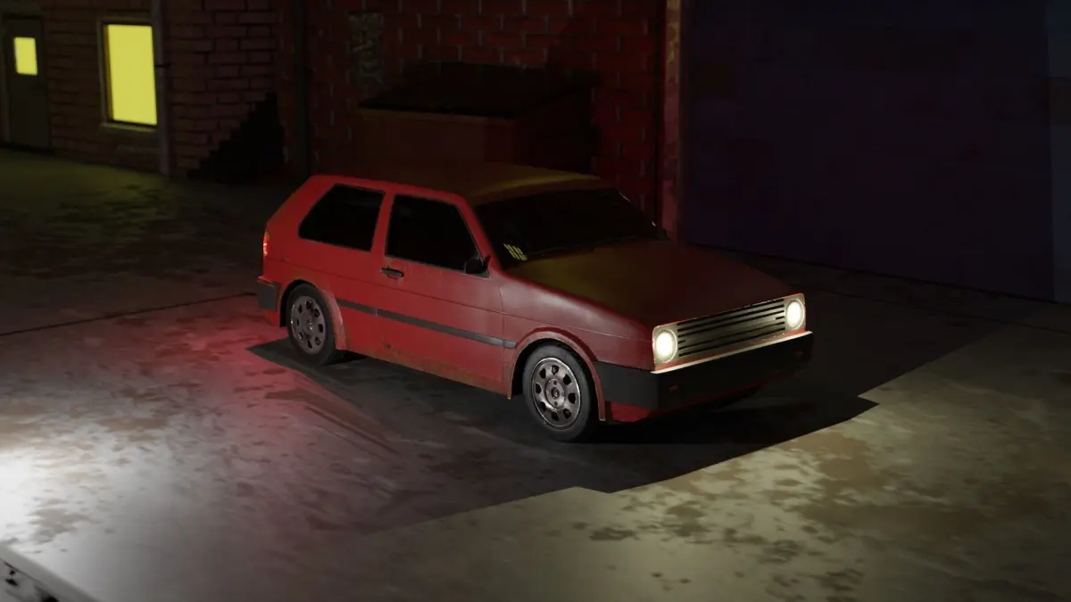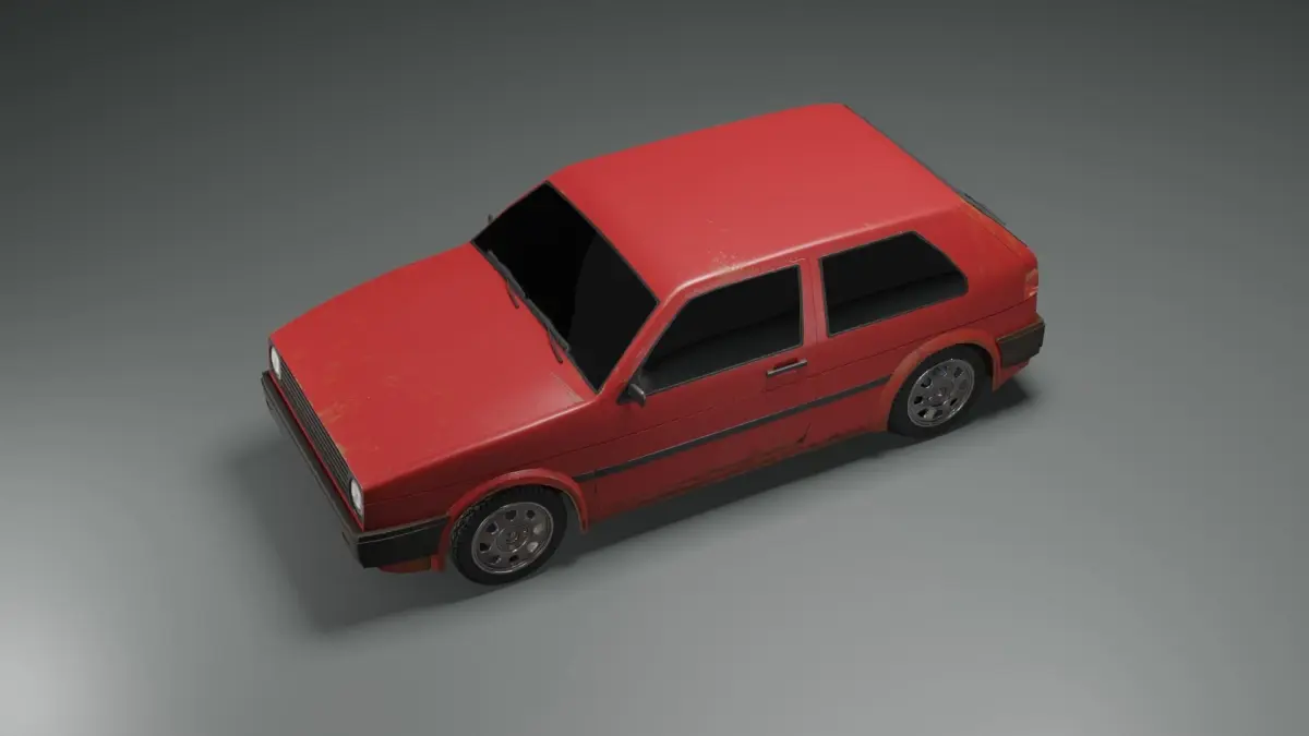 Lowpoly is a car model that looks like a Volkswagen Golf2, but it's not. It's just a car.