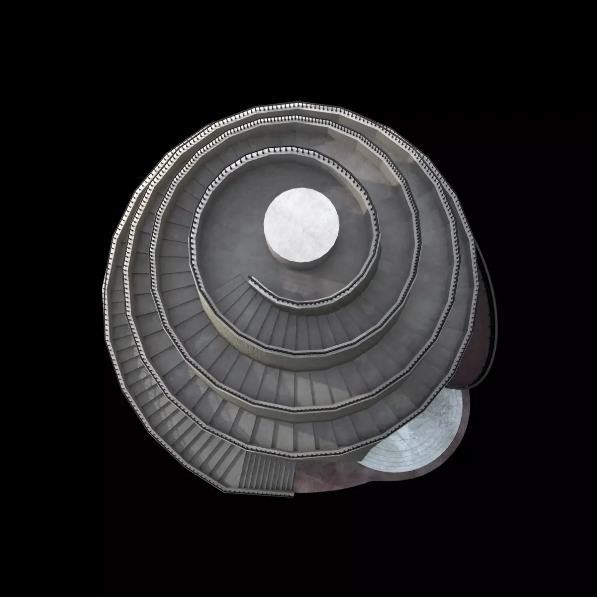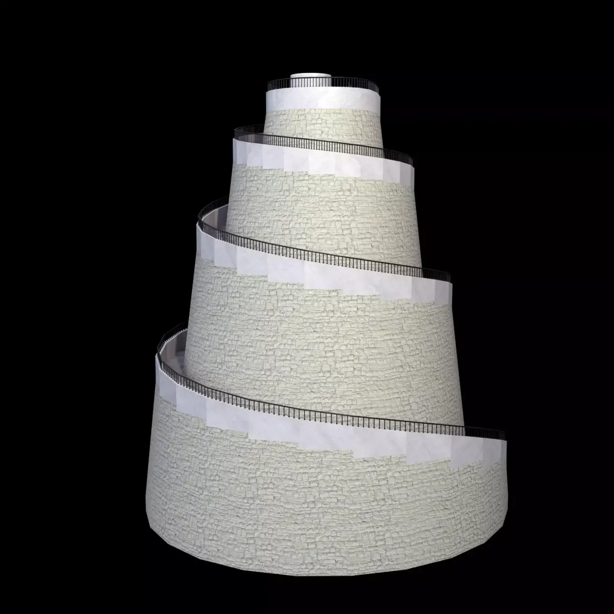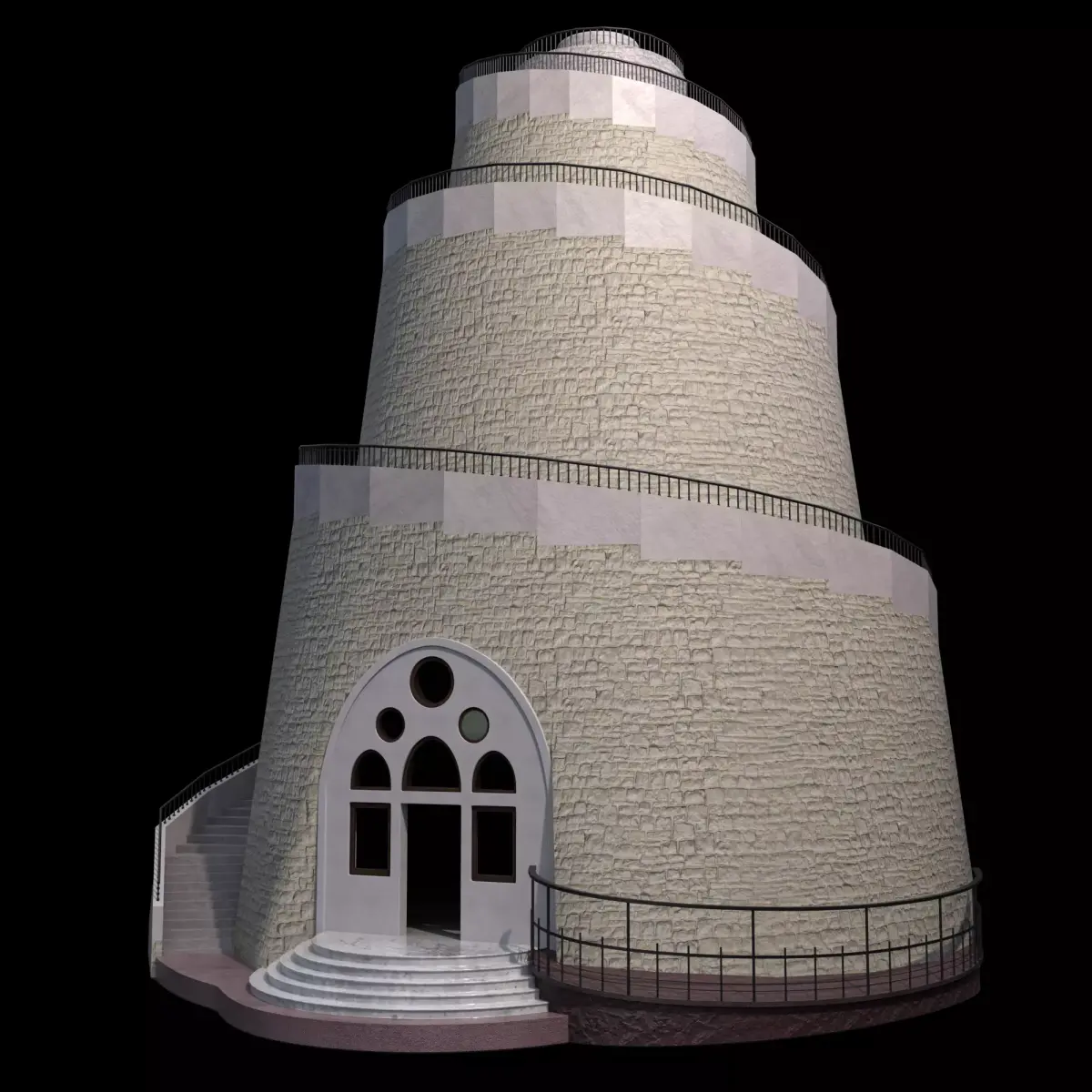 This is a high-quality 3D model inspired by the Notre-Dame du Liban Shrine architectural style. The structure features a unique spiral, terraced tower design with stone walls, arched doors, and detailed railings. Ideal for architectural visualization, historical scenes, animation, and games.