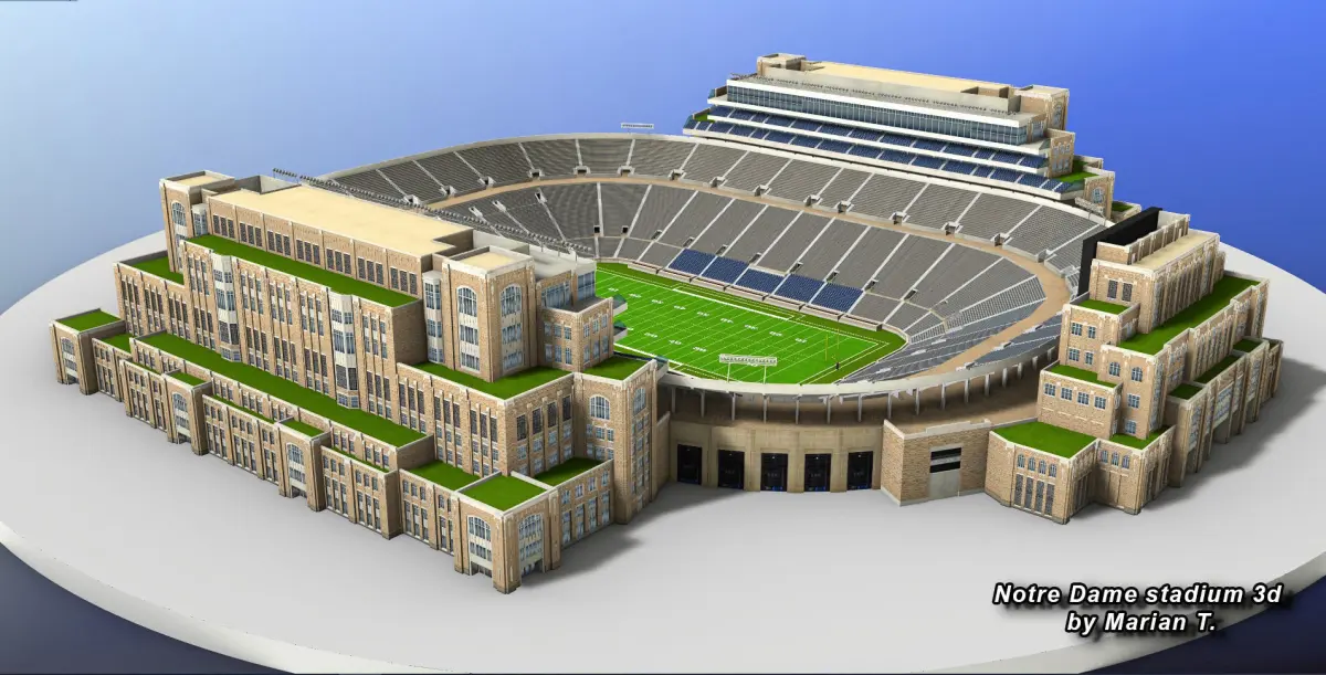The intellectual property depicted in this model, including the brand Notre Dame Stadium is not affiliated with or endorsed by the original rights holders. Editorial uses of this product are allowed, but other uses (such as within computer games) may require legal clearances from third party intellectual property owners.