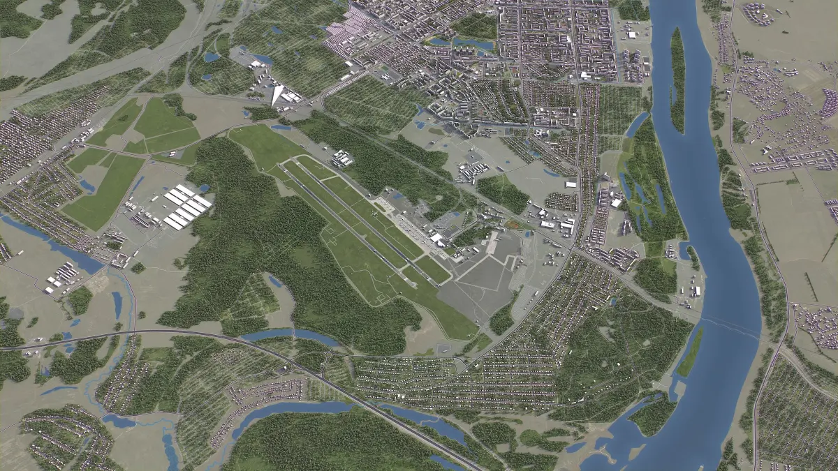 - Integrated Features — Buildings and roads accurately placed on terrain