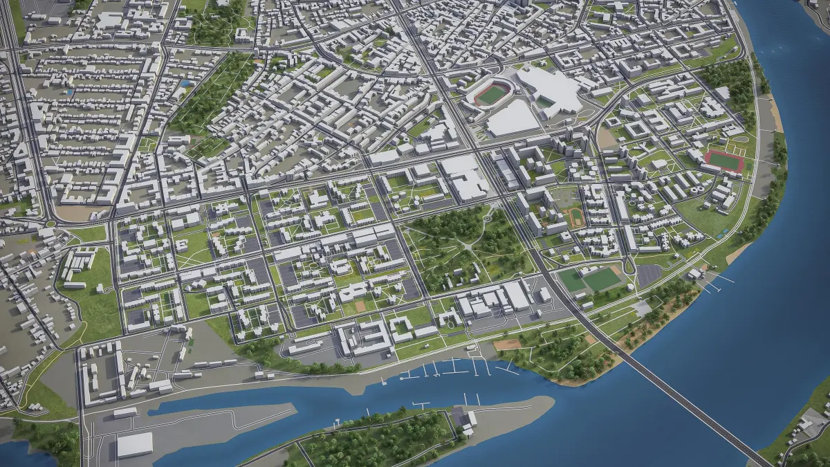 - Full city extents up to 100 x 100 km — or crop to an area of interest for better format compability and scene performance