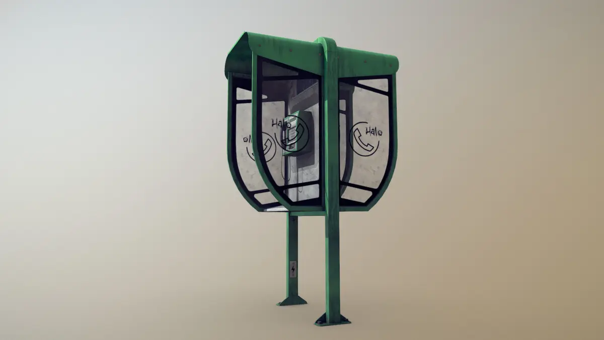Low-poly 3D model PhoneBooth with LODs