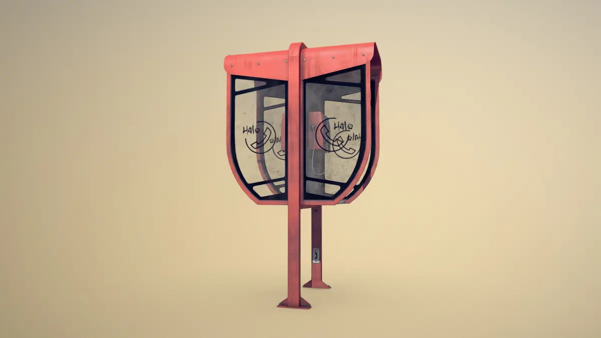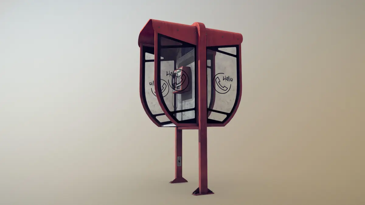 Low-poly 3D model PhoneBooth with LODs